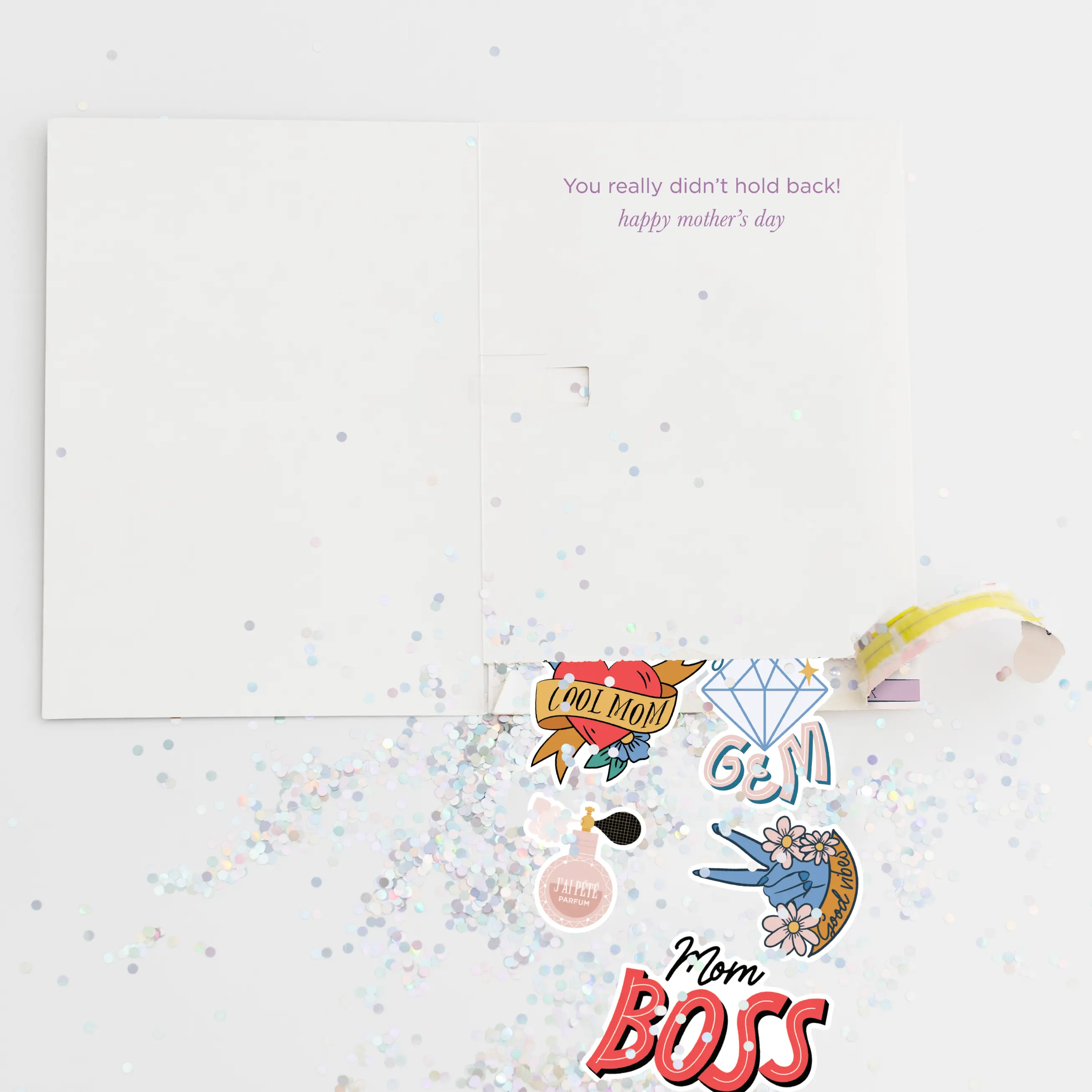 I bought the endless halloween card with glitter and stickers inside. While I also purchased the glitter envelope. I sent one card to my mom in another state and gave the other to my adult child. The adult child tore the card apart to find the wires to cut to shut the music off but loved the glitter and the stickers. the one I sent my mom she knew to open over the trash can but didnt know the music continues to go on and on until the batteries die. So she loved the card and the song and stickers but not the glitter. My dad who has to listen to the card for the next 3 hrs or so was not impressed at all and asked why i hated him. So all in all this card and enveolope was a great buy and fun for at least me.
