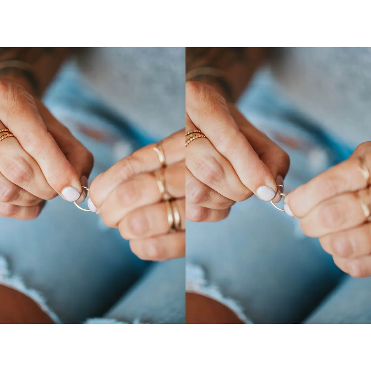 Perfectly delicate, simple, and just a perfect everyday hoop. I never take them off