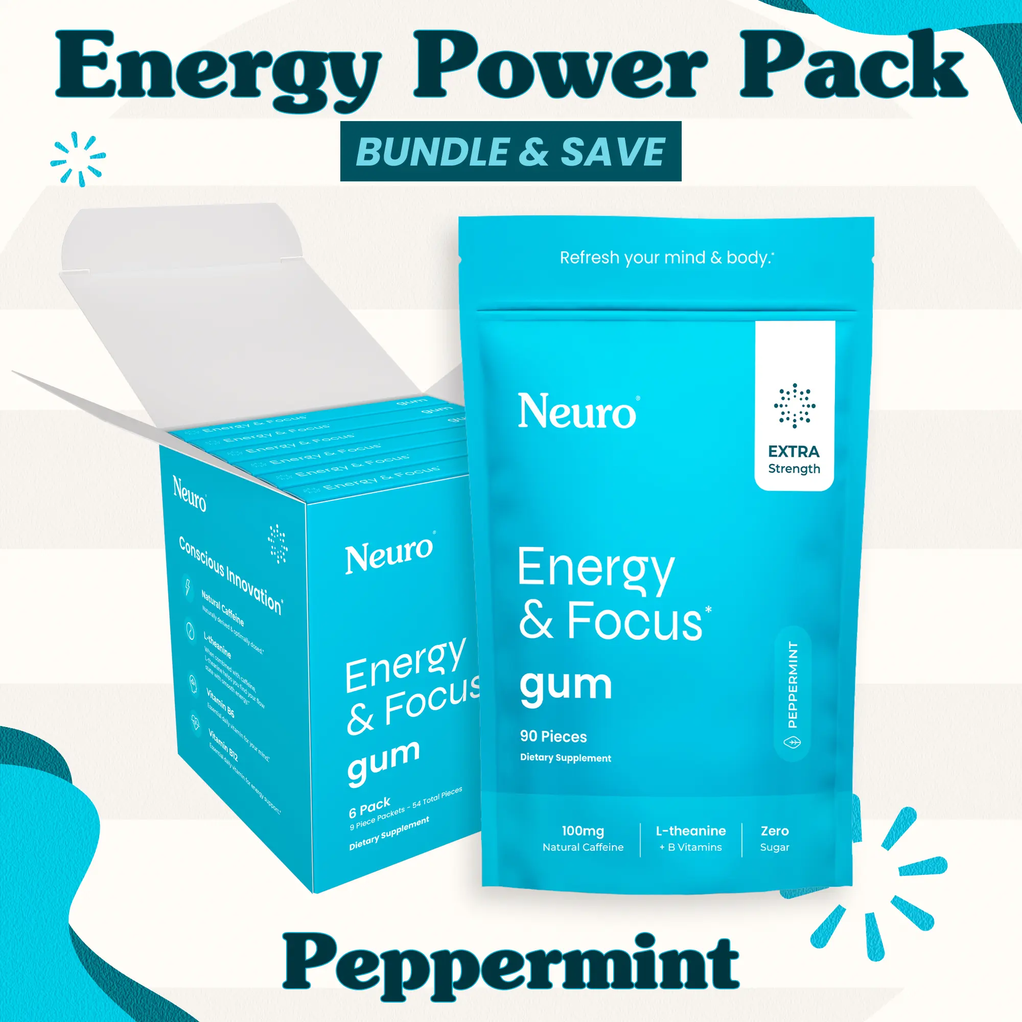·On-the-Go: Simply chew a piece of Neuro Energy Caffeine Gum for fresh, clean energy and cognitive support anytime, anywhere. Experience the difference with every chew.