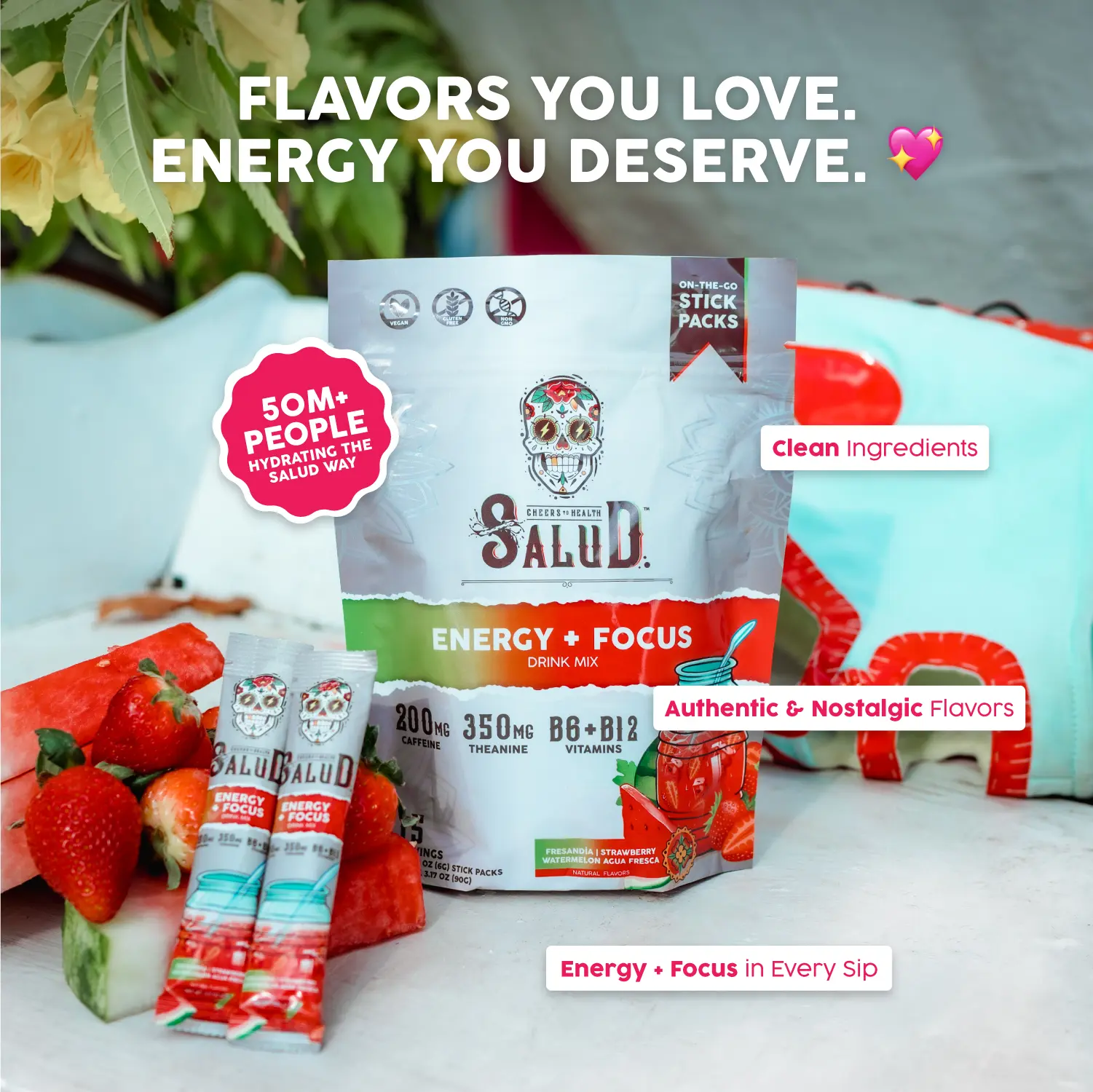 I love Salud energy, with light pineapple juice and water for my pre workout drink.