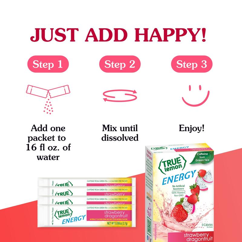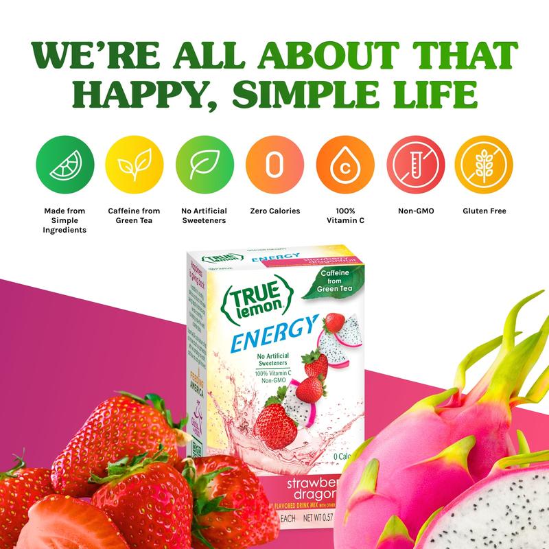 When my favorite energy product was discontinued, I went on a hunt for something new and healthy. I tried True Lemon Strawberry Dragonfruit and have never looked back. My local store quit stocking it and so I set up a subscription with the company. I hate to start my morning without it!