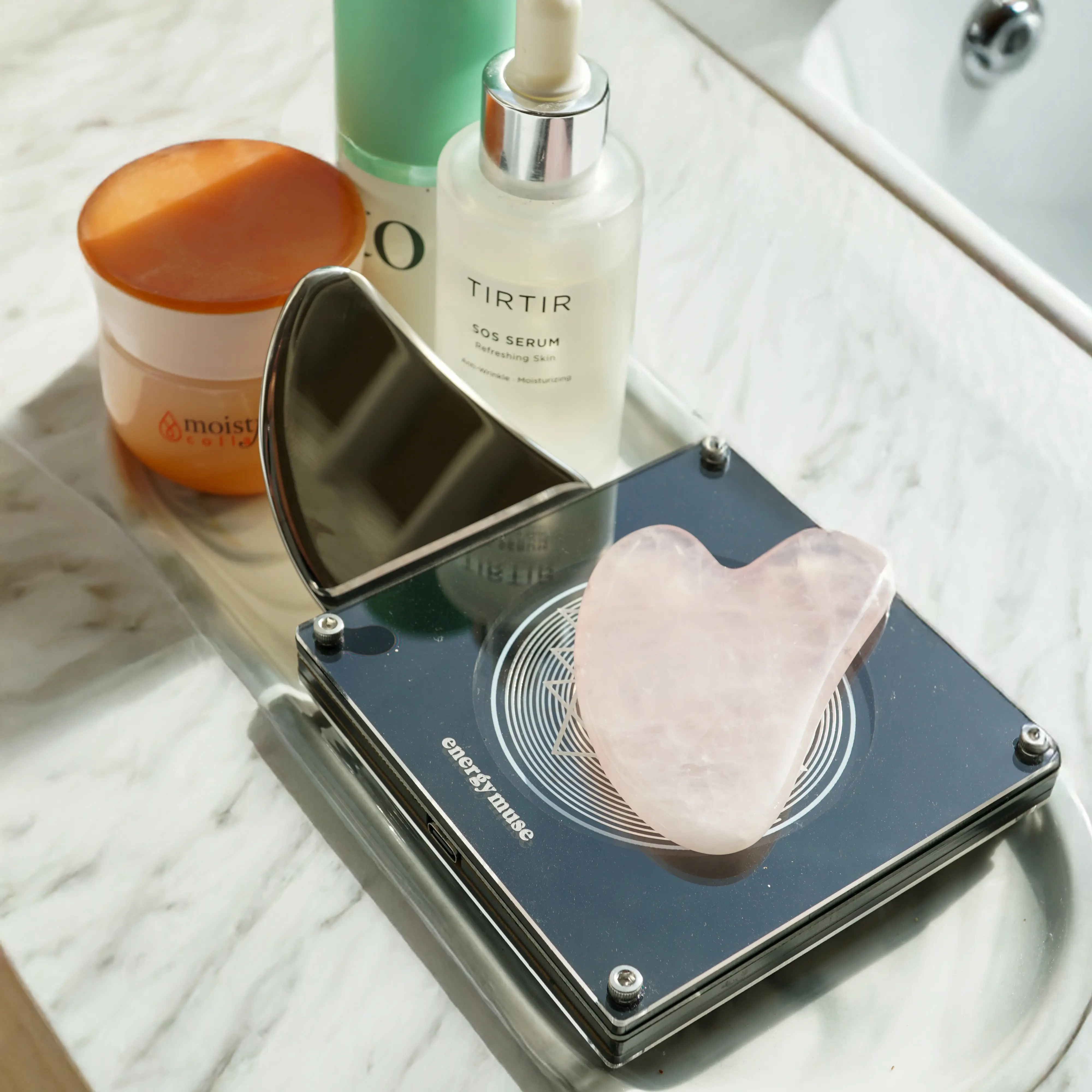 Size: 5” x 5” x 1”. Includes USB charging cable. Place it near your bed, workspace, or meditation area to enhance your environment with the vibration of pure love and restoration. No apps. No noise. Just frequency.