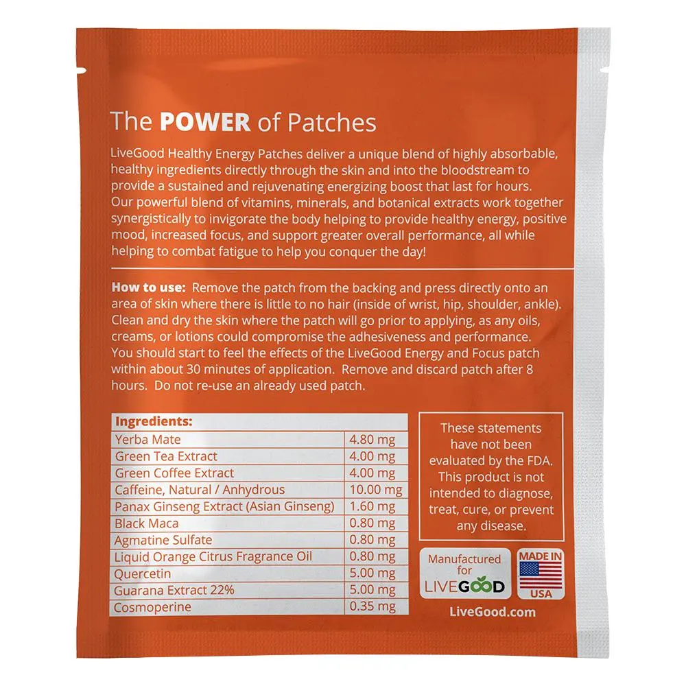 LiveGood Energy and Focus Patches use an advanced transdermal delivery system to provide a steady, natural boost of energy and clarity that lasts for hours. Formulated with a blend of vitamins, minerals, and botanical extracts, these patches help support focus, mood, and alertness β without the crash.