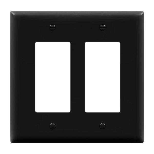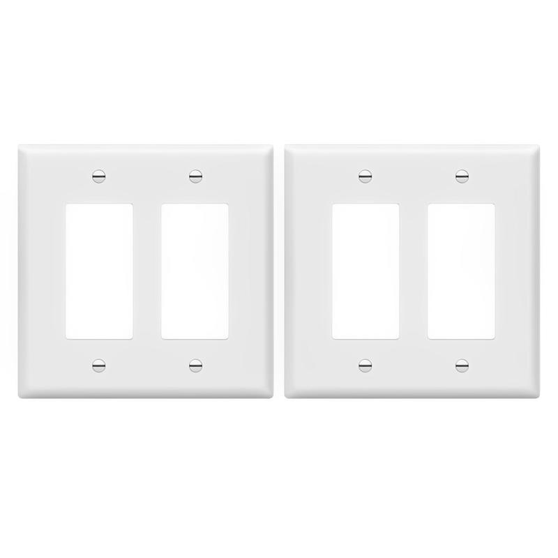 This is a 2-gang, matte finish mid-size Decorator/GFCI wall plate. Enerlites polycarbonate thermoplastic wall plates are manufactured to provide durability, flexibility, and resilience to bending and high impacts. They are also heat and fade-resistant to temperatures over 100 degrees, which protects them from fading and discoloration over time, and have a flammability rating of UL94, V2. Their smooth finish provides an attractive look and makes them easy to clean.