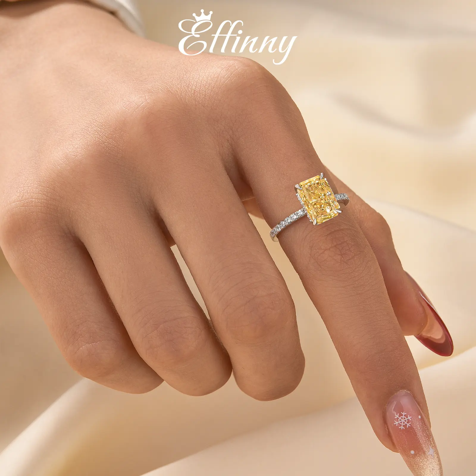 5. Effinny 3.5ct Elongated Yellow Stone Radiant Cut Engagement Ring In Sterling Silver,5A Grade Cubic Zirconia Anniversary Ring for Women