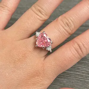 This exquisite engagement ring is a timeless symbol of love and commitment, radiating romance and elegance with its stunning 5.0 CT pink heart cut ring centerpiece.