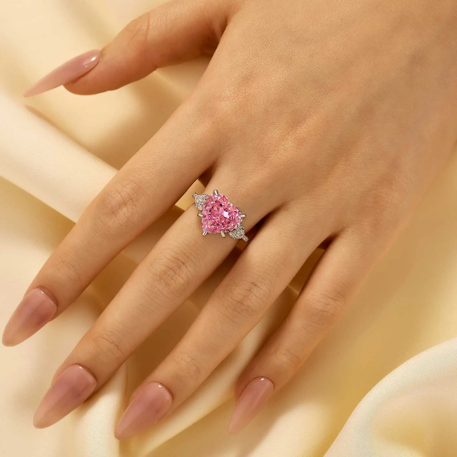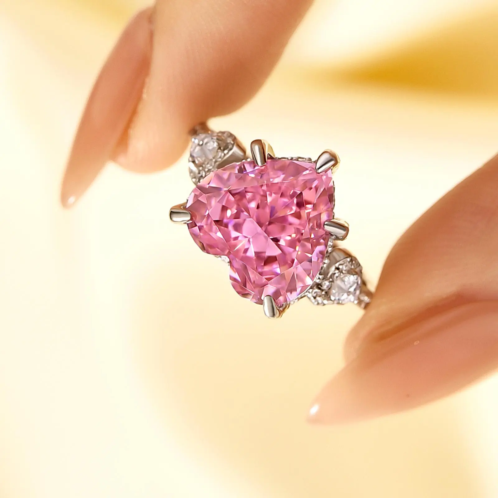 Effinny Royal 5.0CT Pink Heart Cut Engagement Ring#effinnyring #engagementring #fashiontiktok #dailyjewelry #valentinesday #giftideas #silverring #heartcut