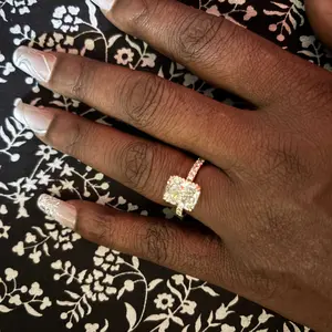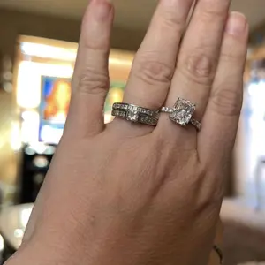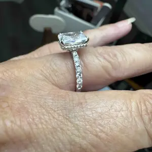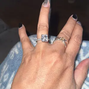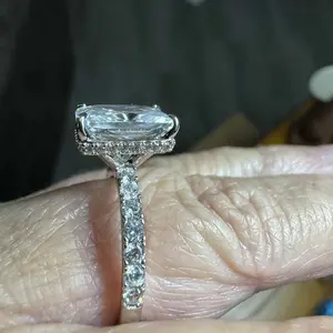 Eternity Band Ring: The eternity band version of this ring offers the same stunning design, featuring the 2mm band, 3.5CT radiant-cut cubic zirconia, and hidden halo. The added stones give it a continuous sparkle for a more luxurious feel.