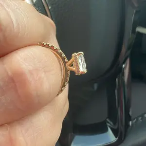 Hidden Halo Design: Beneath the main stone lies a hidden halo of delicate 1mm stones, providing extra sparkle and depth. This design element enhances the ring’s beauty without overwhelming the overall look.