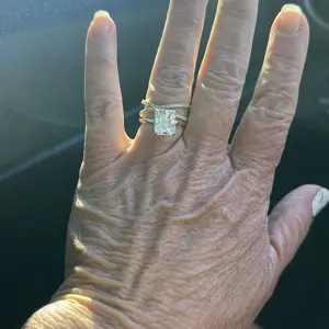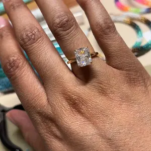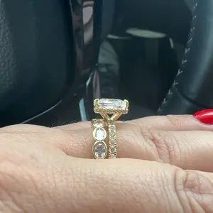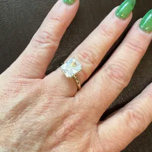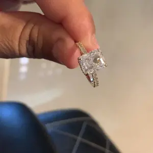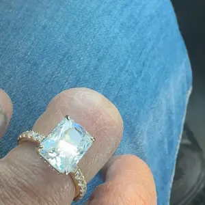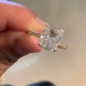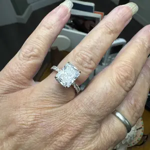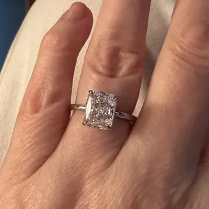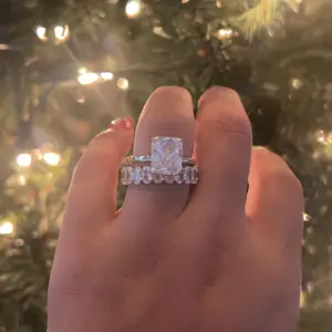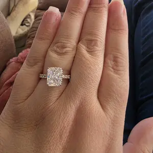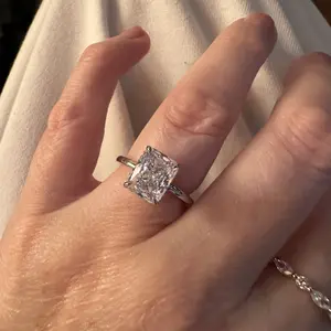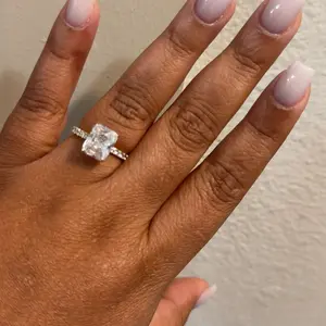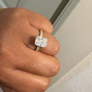 3.5CT Square Radiant Cubic Zirconia: The centerpiece is a 3.5CT square radiant-cut cubic zirconia. With 88 precise cuts, the stone captures and reflects light from every angle, adding brilliance and sparkle to the design.