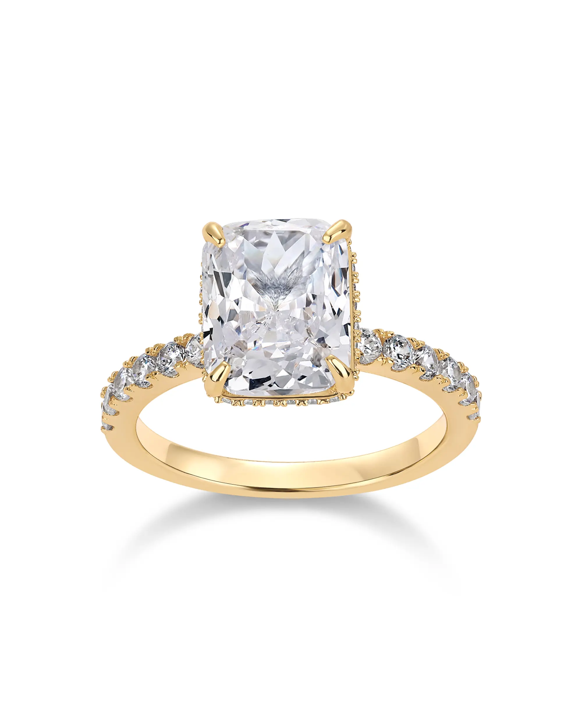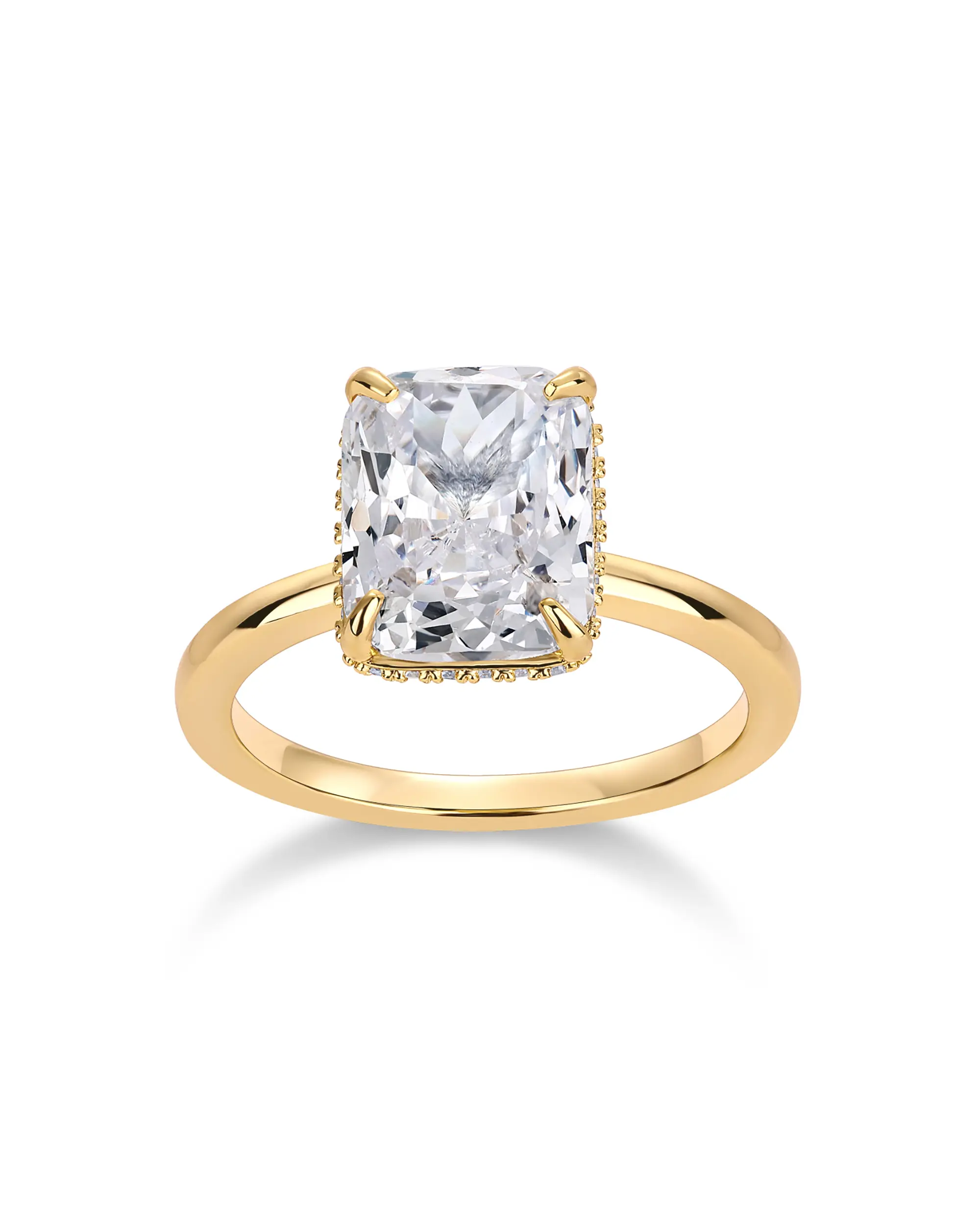 PAVOI 14K Gold Plated 3.5CT Square Radiant Cubic Zirconia Engagement and Promise Ring for Women - Hidden Halo Design