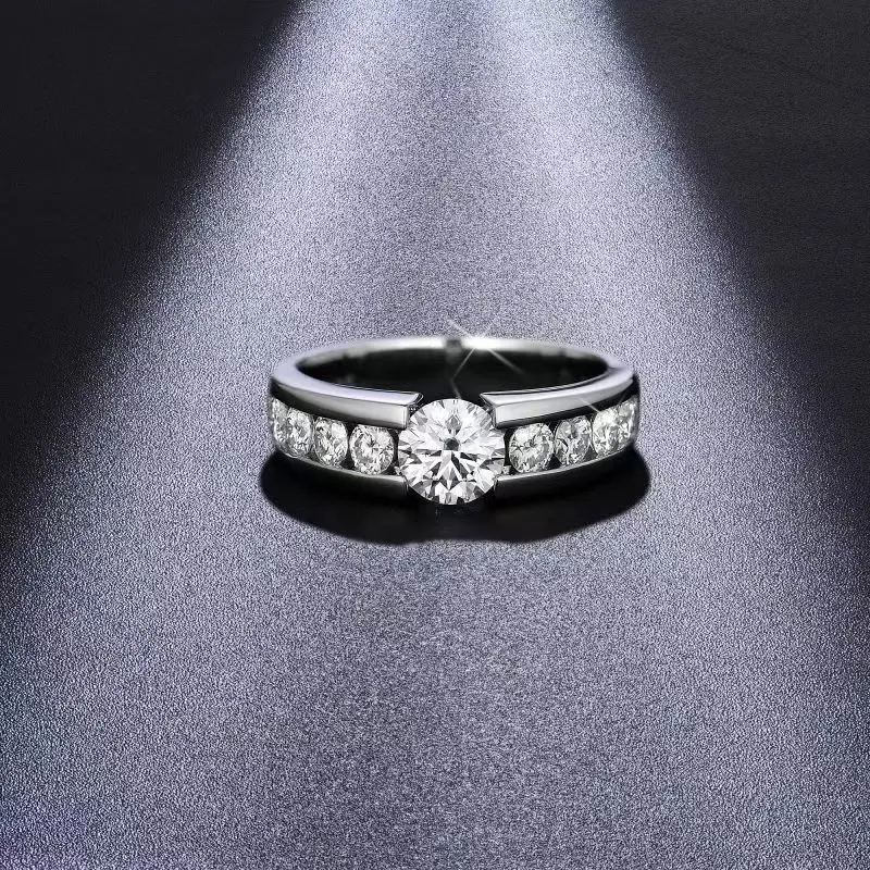 Titanium 1Ct. Men's Wedding Band Engagement Ring with 9 large Princess Cut Cubic Zirconia