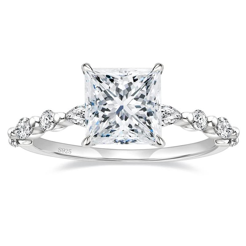 ·♥ Specification ♥ 925 sterling silver ring with 2 carat princess cut cubic zirconia, paved with clear sparkling cz stone,stamped 925, high polished finish