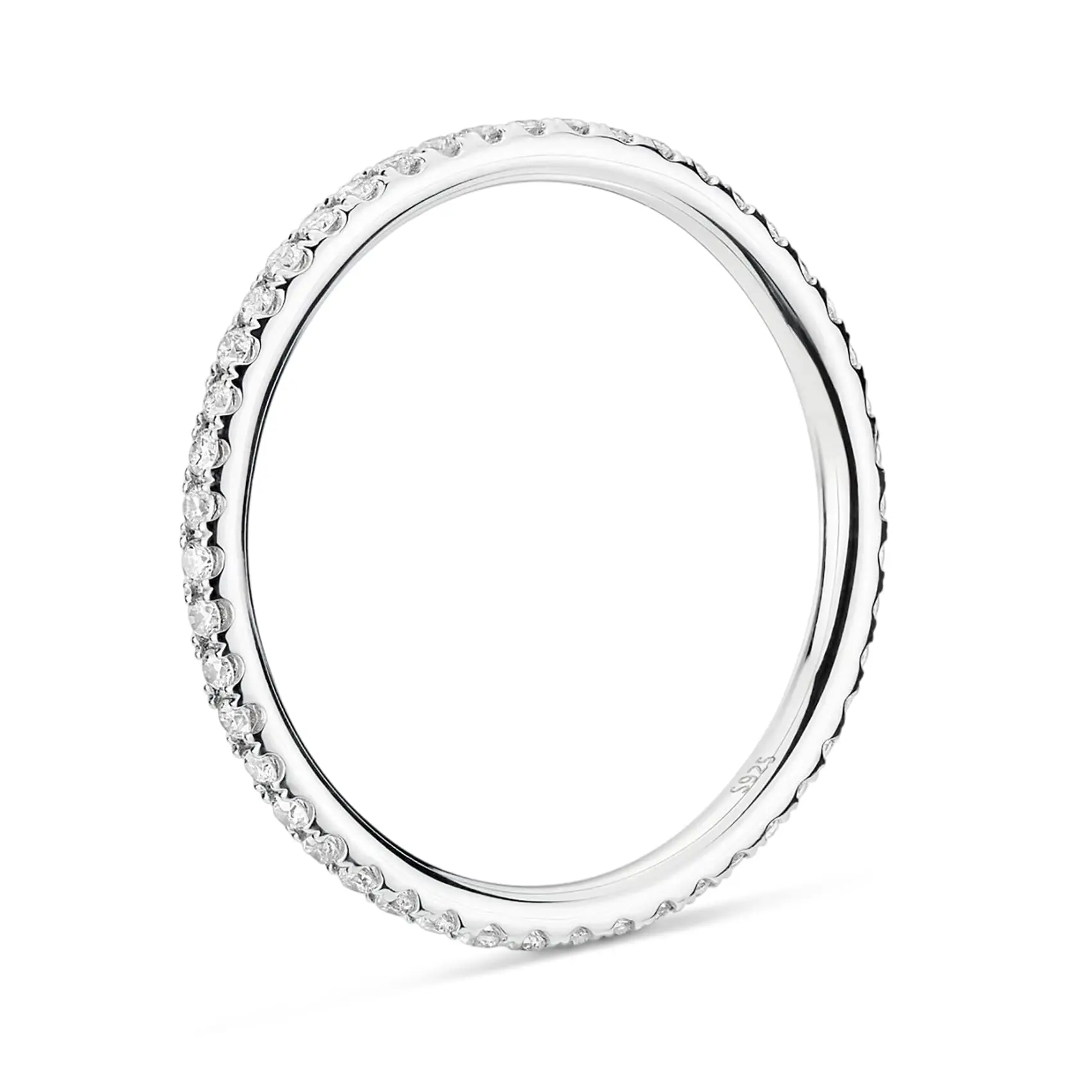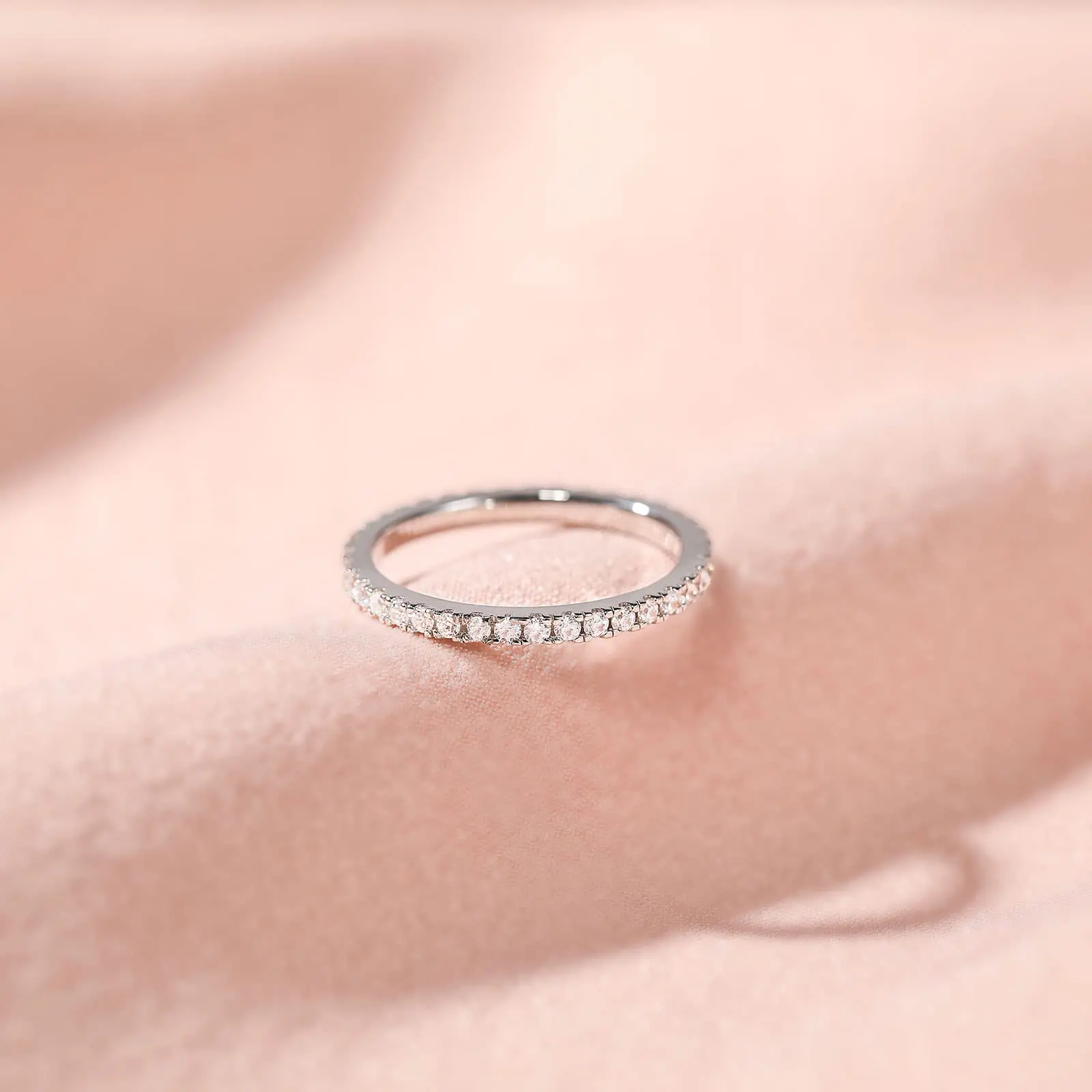 ·♥ Stylish ♥ Round-cut cz stones encircle the finger in this glamorous and whimsical band. A wonderful choice as a wedding ring band, it is also the perfect band to stack or wear on its own