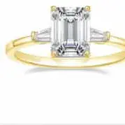 ·♥ Stylish ♥ Captivating two trapezoid-shaped stones brilliantly frame the center emerald stone in this classic three stone ring. The petite band gently tapers and secures the gems in a basket setting