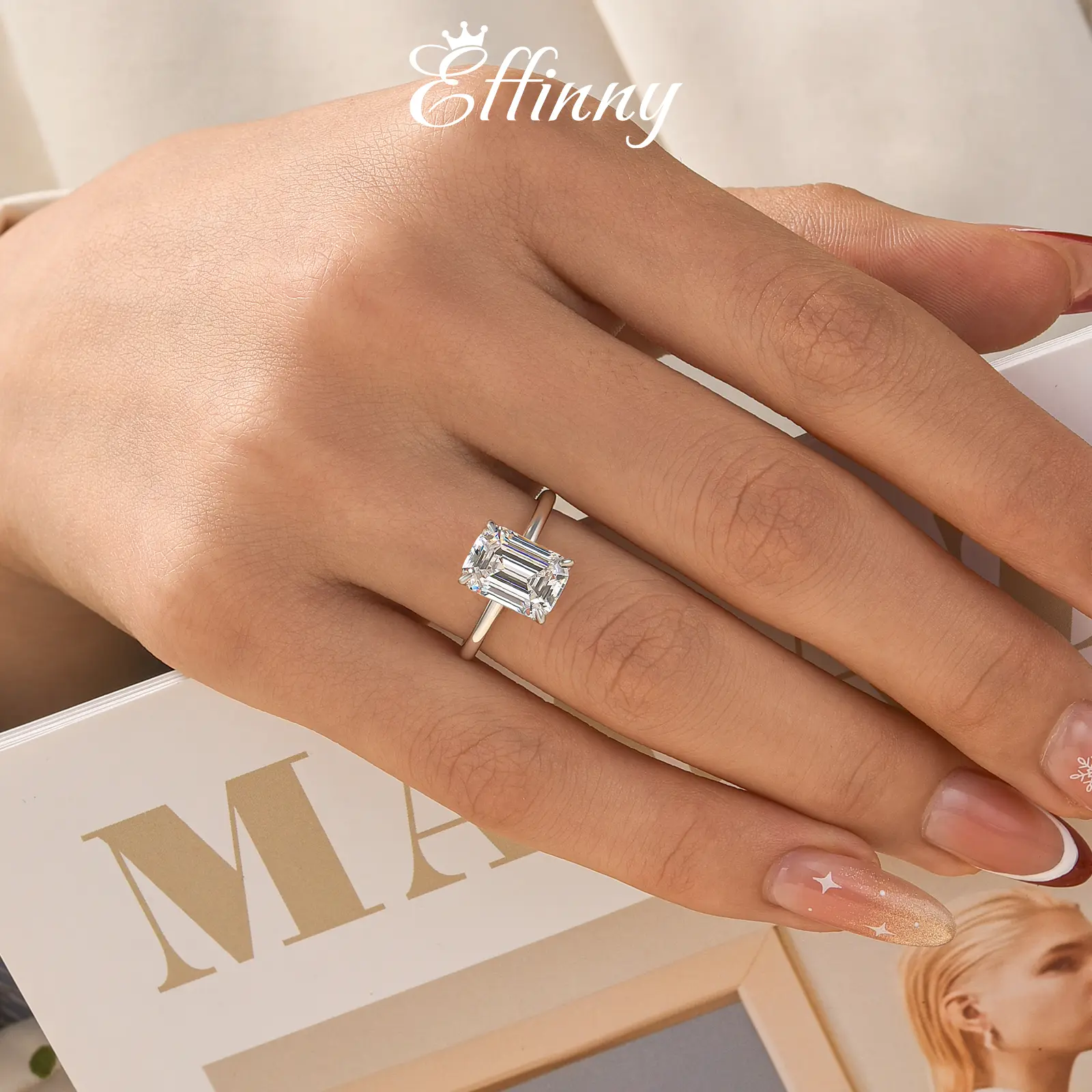 Effinny 3.5ct Rectangle Cut Solitaire Engagement Ring for Women