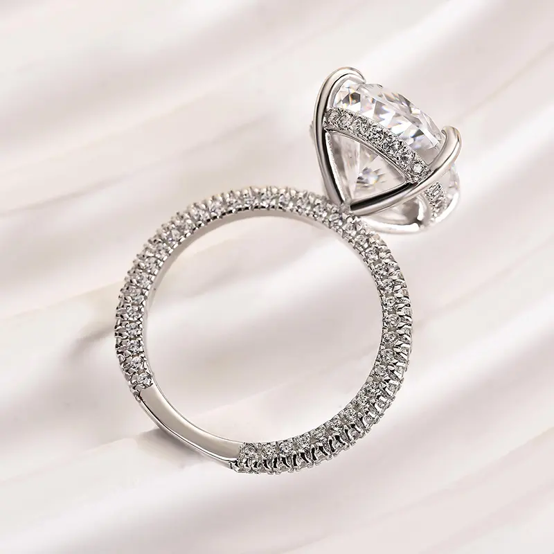 Inspired by exceptional beauty, this ring showcases a mesmerizing oval-cut stone with a distinctive crushed ice effect, radiating unparalleled sparkle. Meticulously crafted in sterling silver, it combines elegance with affordability. Elevate your engagement with this exquisite piece, symbolizing both extraordinary beauty and enduring commitment.