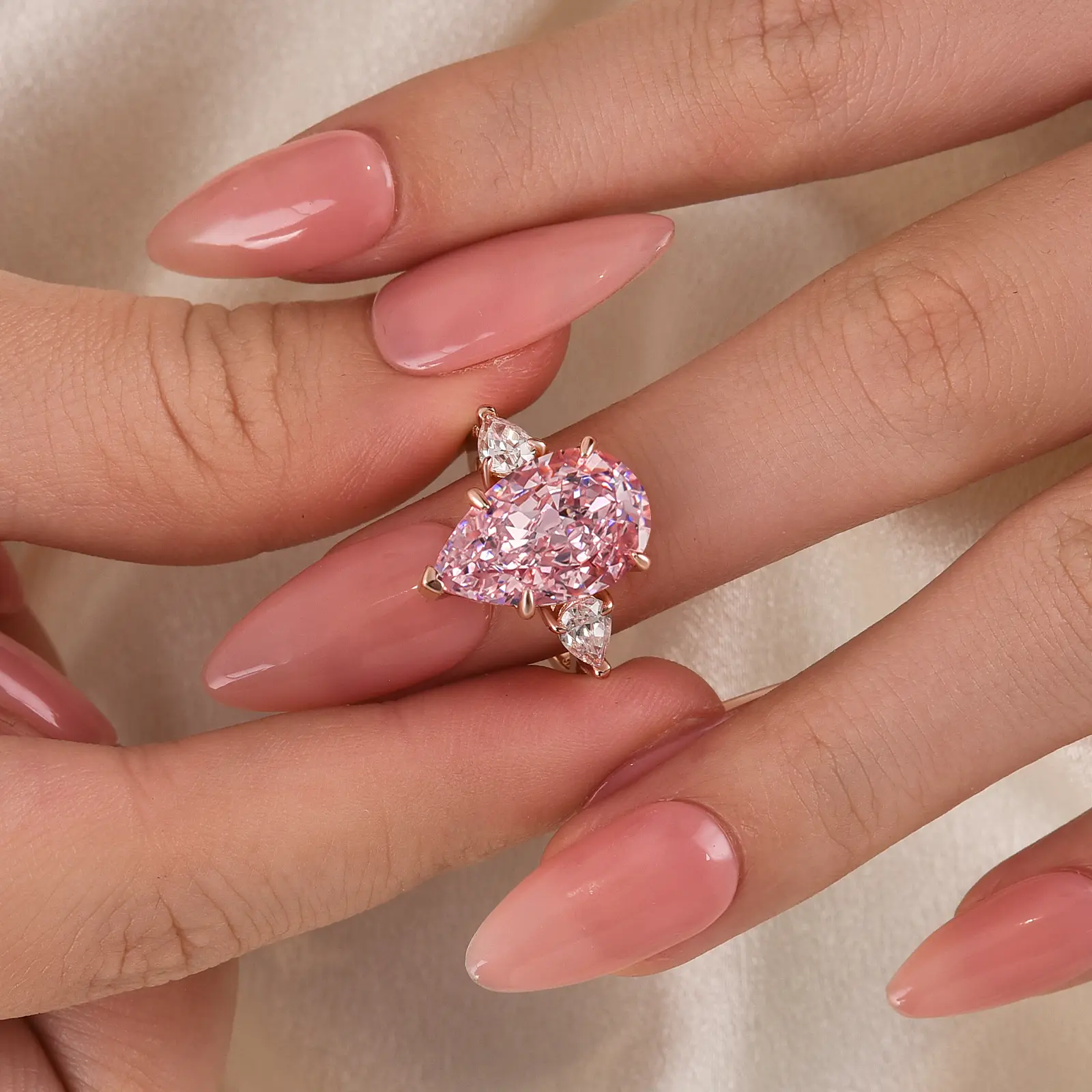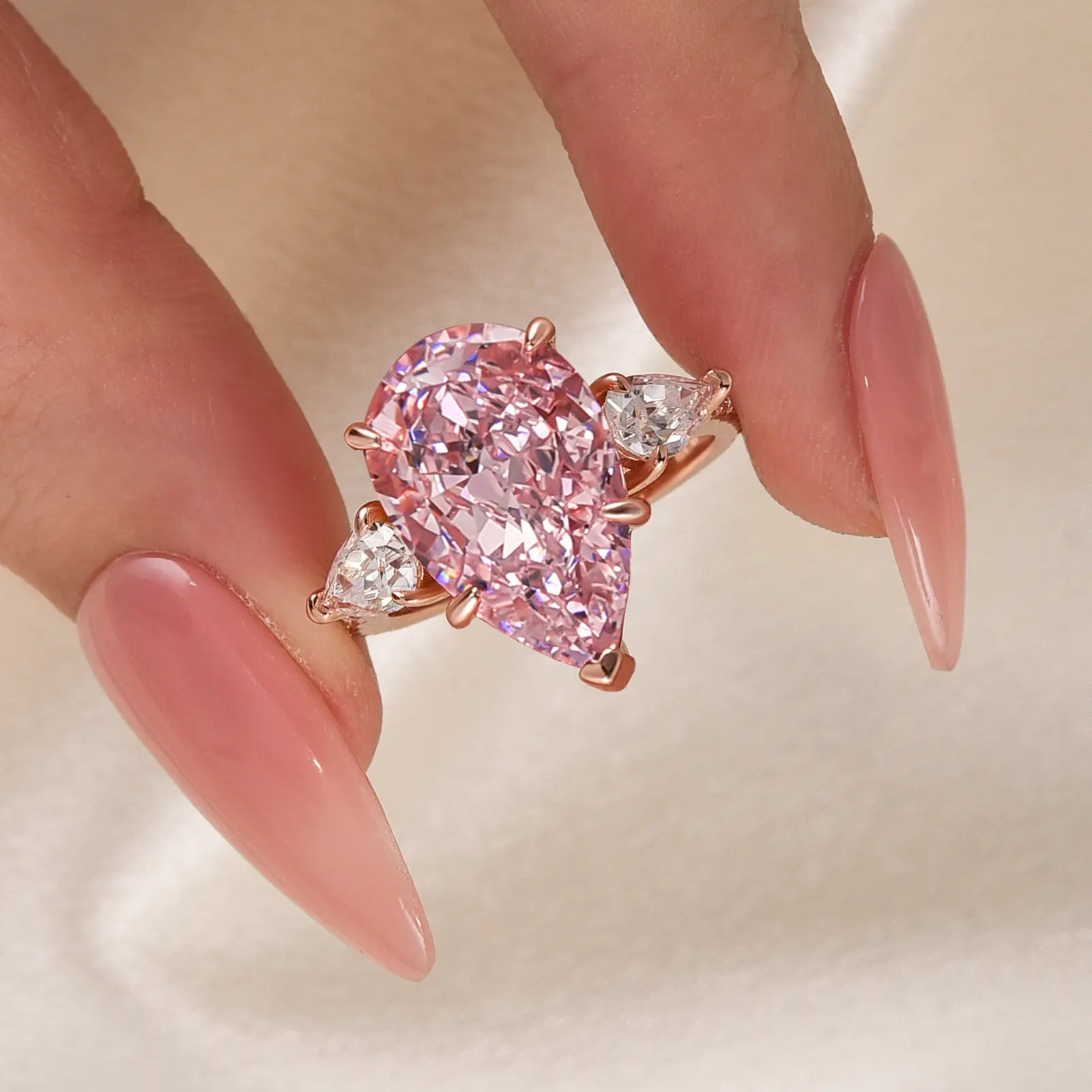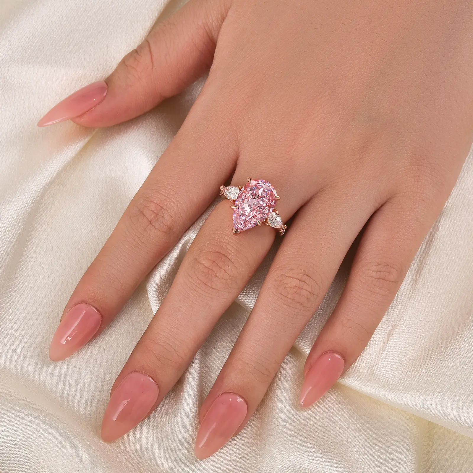 Introducing the stunning Maxine Gorgeous 8.0ct Pear Cut Pink Stone Engagement Ring. This exquisite ring features a captivating 8.0ct pear-cut pink stone that exudes elegance and charm. It's a beautiful choice for those seeking a unique and eye-catching engagement ring. Perfect for making a statement of love and commitment on any special occasion.