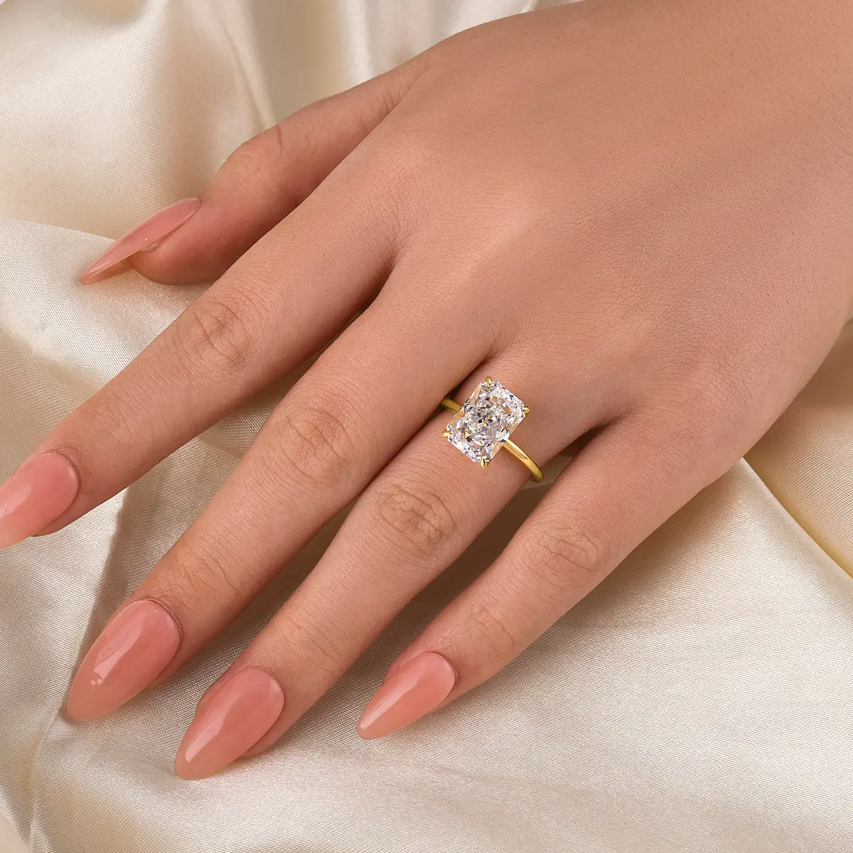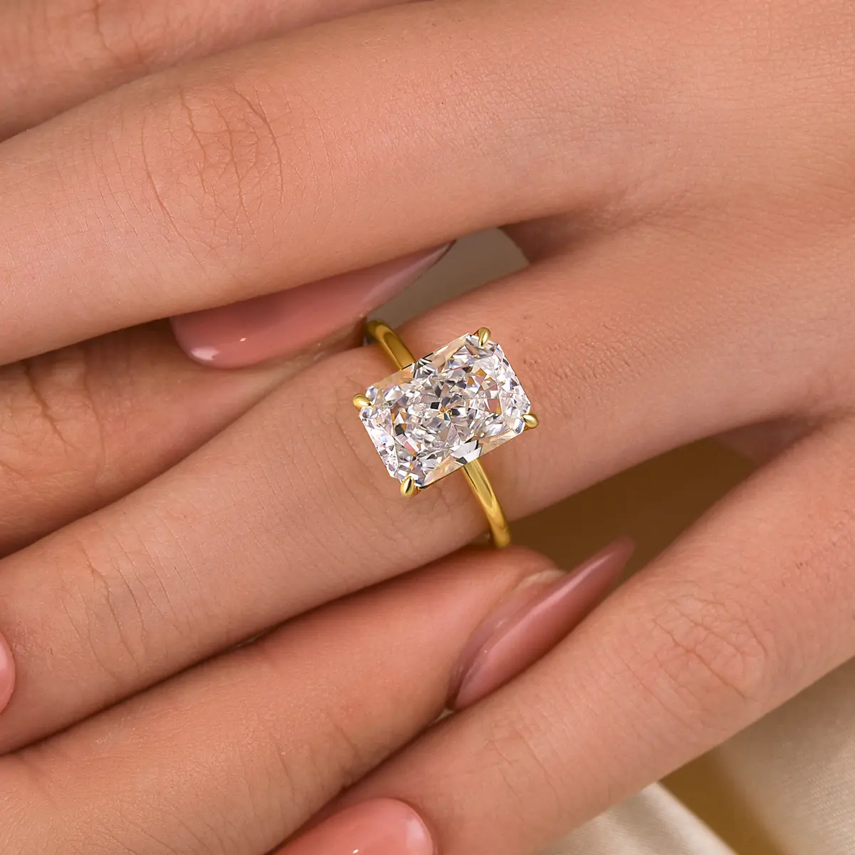 The Maxine Classic 5.0ct Radiant Cut Engagement Ring exudes timeless elegance. Featuring a stunning 5.0 carat radiant-cut center stone, this ring captures light from every angle, offering unmatched brilliance. Set in a sleek and durable band, it’s the perfect choice for those seeking a blend of classic beauty and modern sophistication.