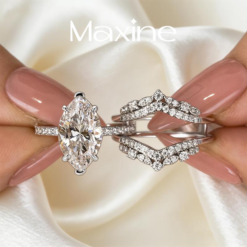 5. Maxine Synthetic Moissanite 4.0ct Marquise Cut Insert Engagement Ring Set 2PC,VVS1 Women's Ring Jewelry,Bridal Ring Set,Wedding Ring Set for Daily,Travel,Proposal,Birthday,Anniversary