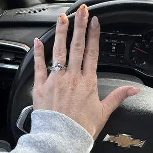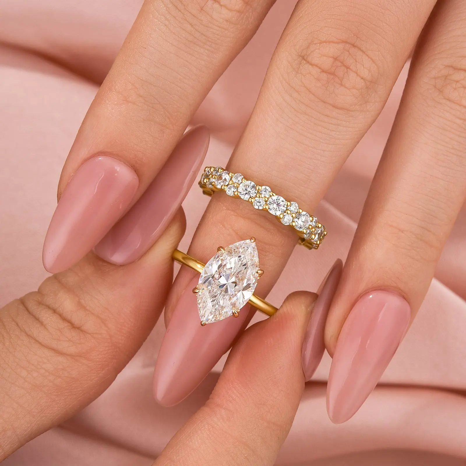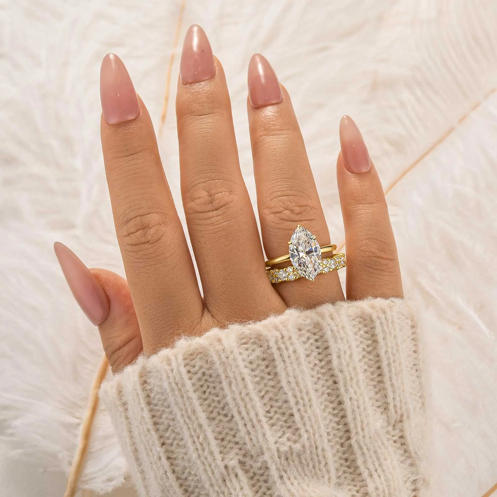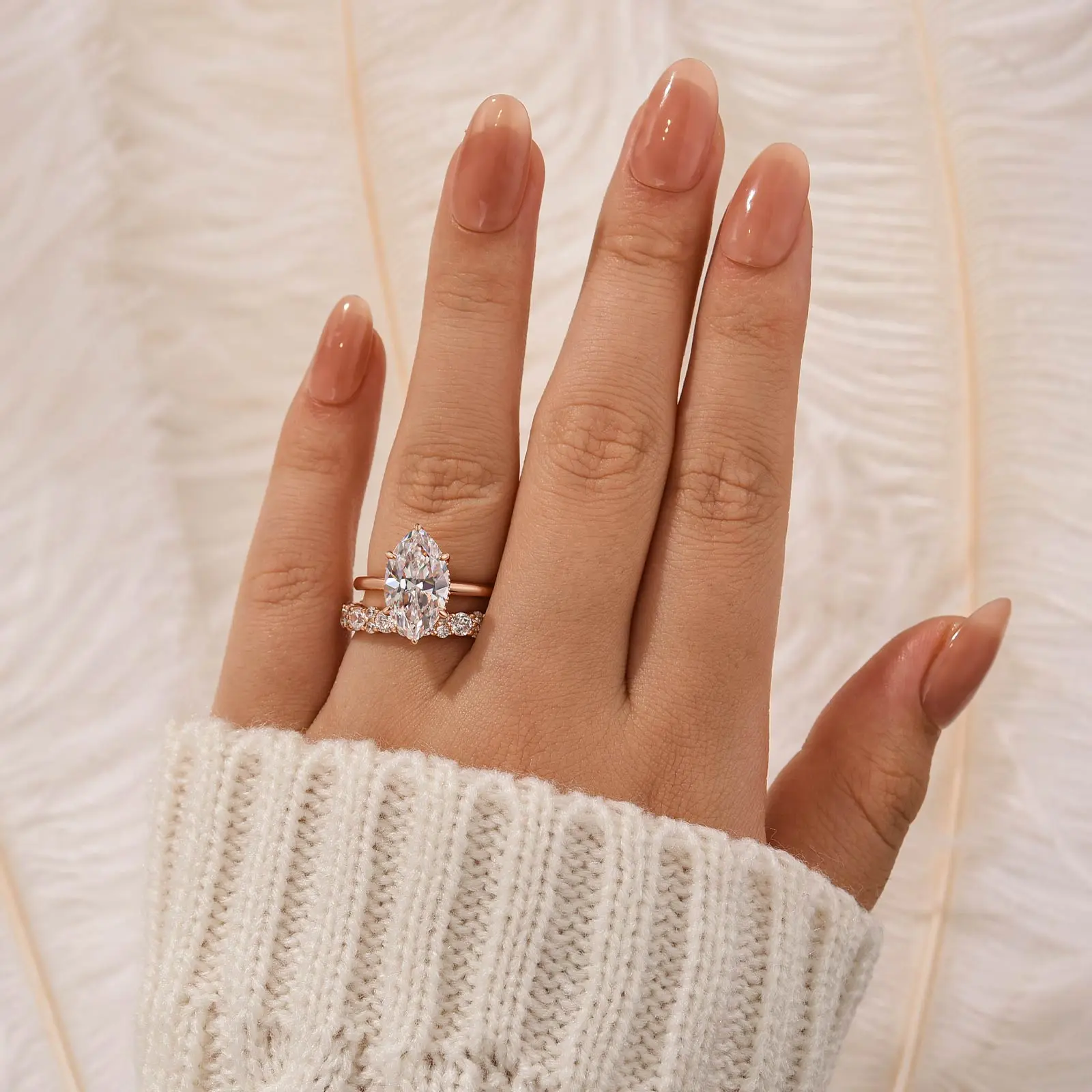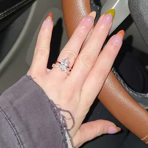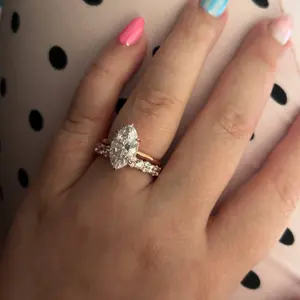 Very pretty ring! True to size. The wedding band on the very first picture isn’t accurate to what they send and the band on the marquise ring is really thin but otherwise it looks amazing!