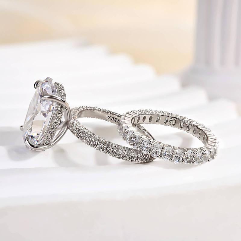 Introducing the Maxine Luxury Engagement Ring Set, an epitome of opulence and grandeur. This magnificent set features a breathtaking 8.0 carat oval cut center stone, radiating unparalleled brilliance and sophistication. The elegant design is meticulously crafted to highlight the stone's exquisite beauty, making it the ultimate symbol of your extraordinary love.
