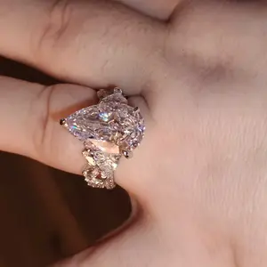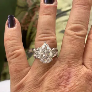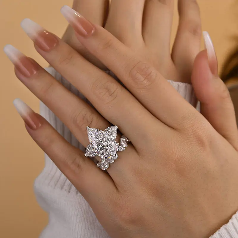 Introducing the Maxine Luxury 8.0ct Pear Cut Engagement Ring Set. This exquisite set features an 8.0ct pear-cut stone that exudes elegance and sophistication. It's a timeless symbol of love and commitment for any special occasion, making it the perfect choice for those seeking a stunning and unique engagement ring set.