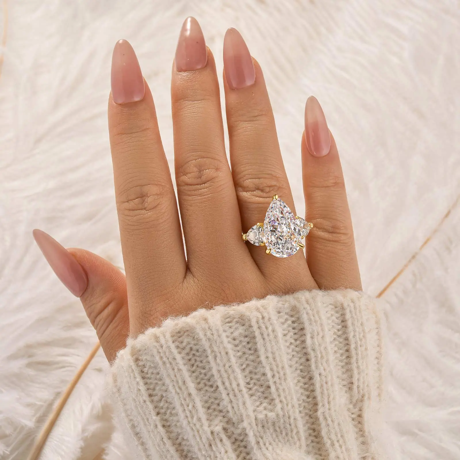 I love it!! I loved the other engagement rings đ and then I got this one & now I head over heels in love with this ring! Itâs unique and I love the pink center pear cut ring. It sparkles just as much as the white center pear cut eco diamond đđ I love the rose gold accents on the prongs as well!