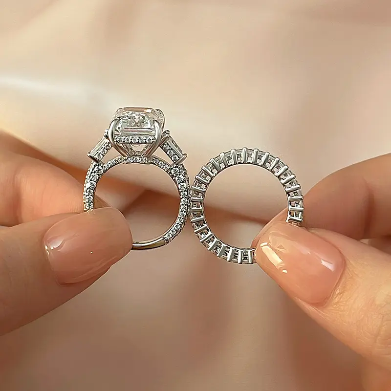 Effinny 7.5ct Rectangle Cut Engagement Ring Set For Women, 925 Sterling Sliver Promise Ring, 5A Grade Cubic Zirconia Bridal Ring Outdoorfun
