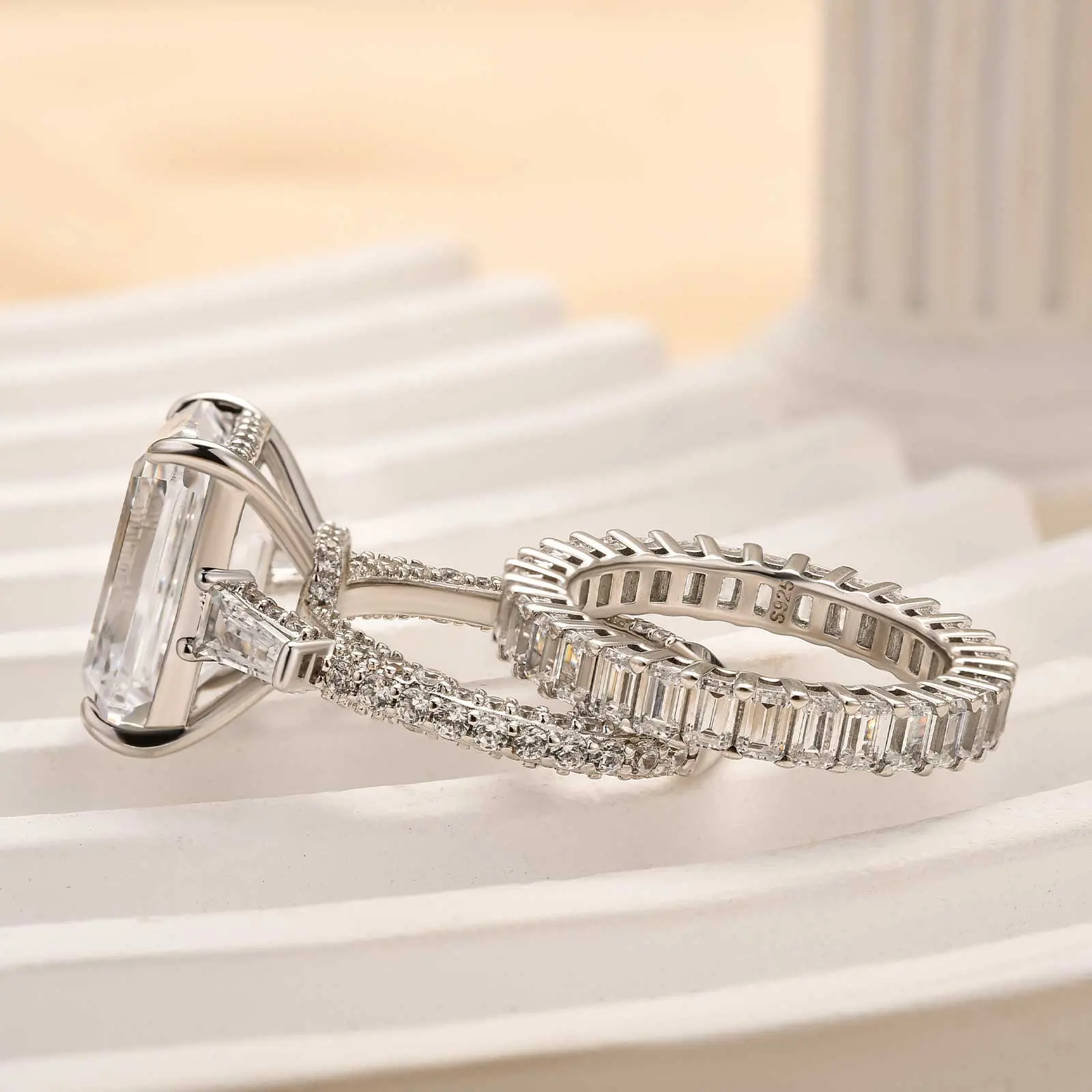 #tiktokshoploveatfirstfind Emerald cut engagement ring #buynow #diamondsring #effinnyjewelry #effinnyringset #weddingband #vlatentinesday #valentinesdaygift #effinnyengagementring💍 #fyp #sterlingsilver #emerladcut