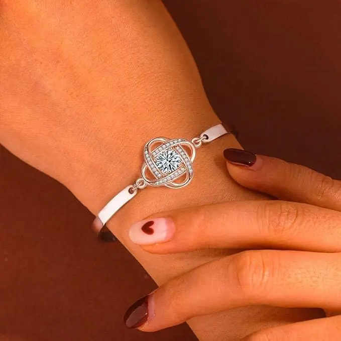 ·High Quality Materials -- This bracelet is crafted from high quality 925 sterling silver and features a delicate sparkling love knot crystal charm.