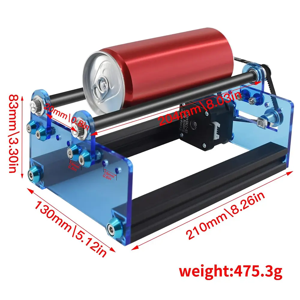 Rotary Roller, Engraver Y-axis Rotary Roller Engraving Module for Engraving Cylindrical Objects Cans,Adjustable to 5 roller positions, Rotary roller is compatible with Lightburn and LaserGRBL, Compatible with Most Engraving Machines