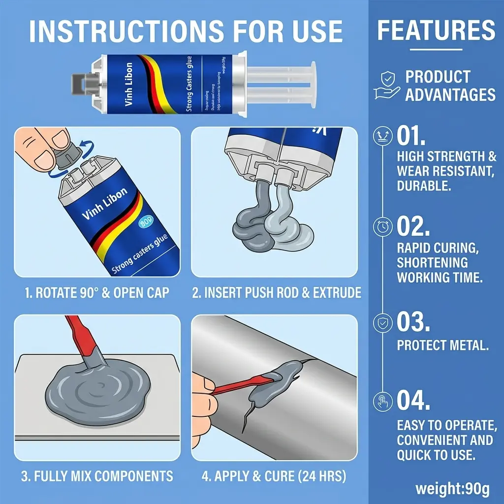 ·Multi Functional Use: the metal repair glue suitable for various metal surfaces, quickly and effectively repairing cracks, fractures, and damages. Suitable for casting, welding, and daily metal repair.