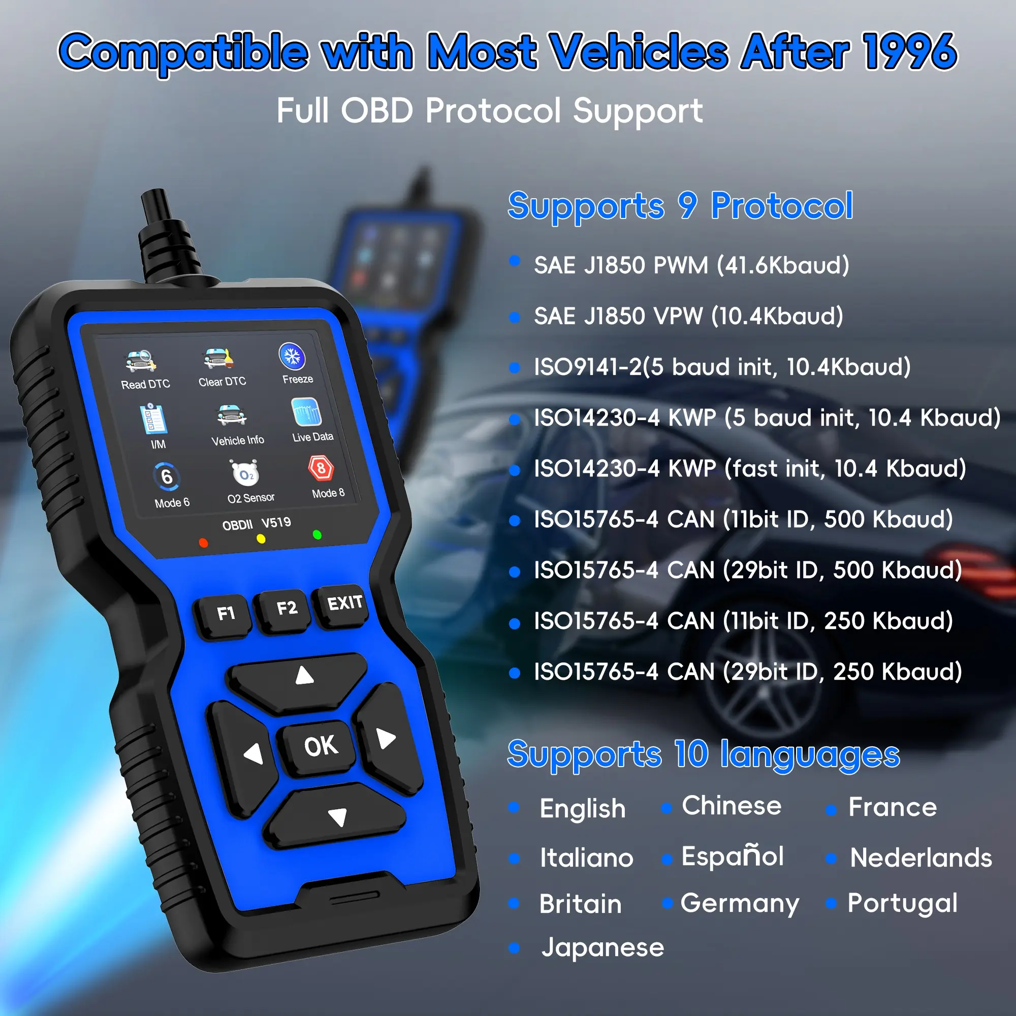 【Wide Compatibility】: Compatible with all OBDII/EOBD vehicles manufactured after 1996, ensuring broad usability across various models.