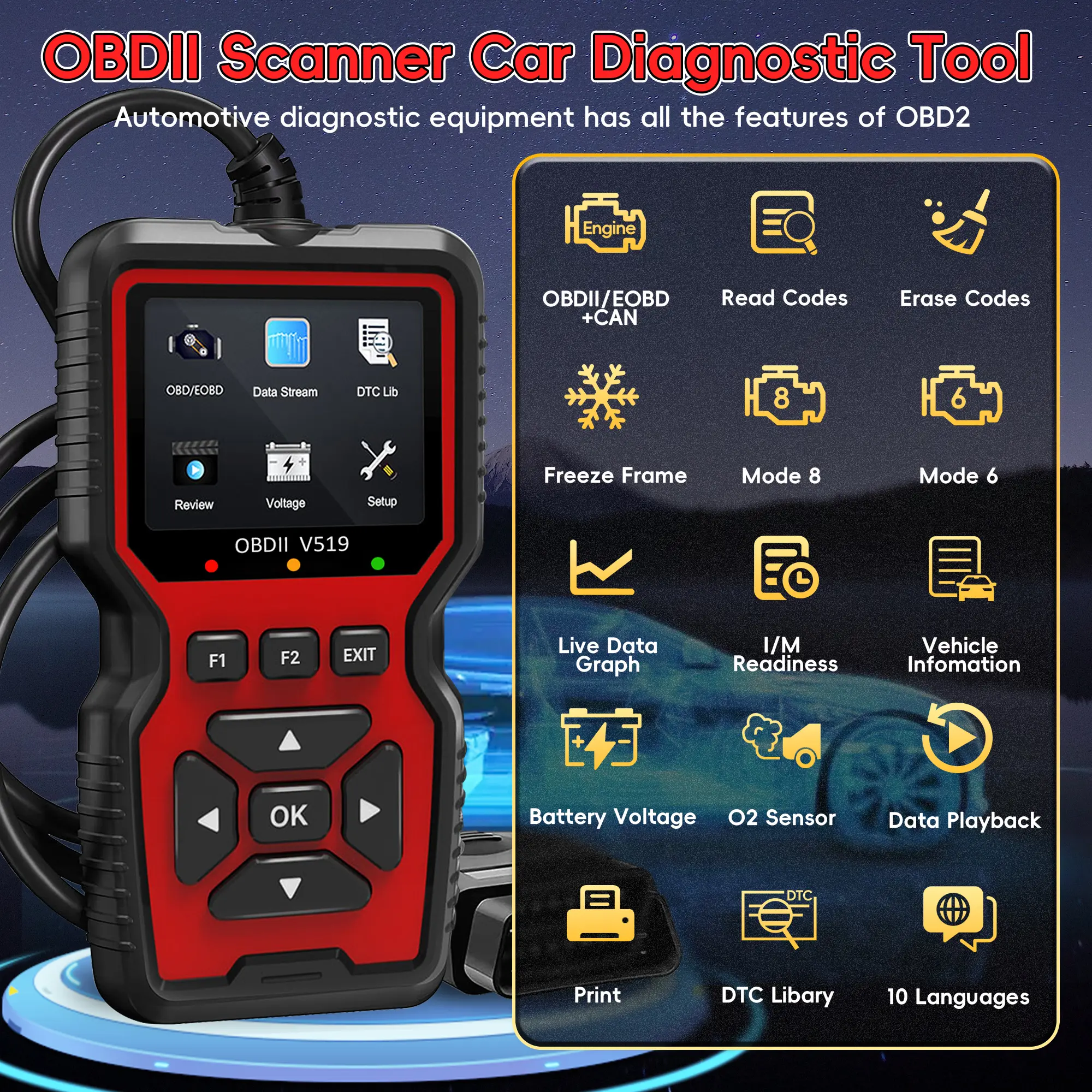 【Compact Design】: Compact and portable, this OBD2 scanner is easy to handle and store, enhancing convenience for users.