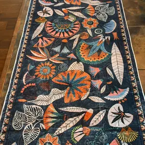 100x300cm/3.3x9.8ft,1pc, Dark blue flowers