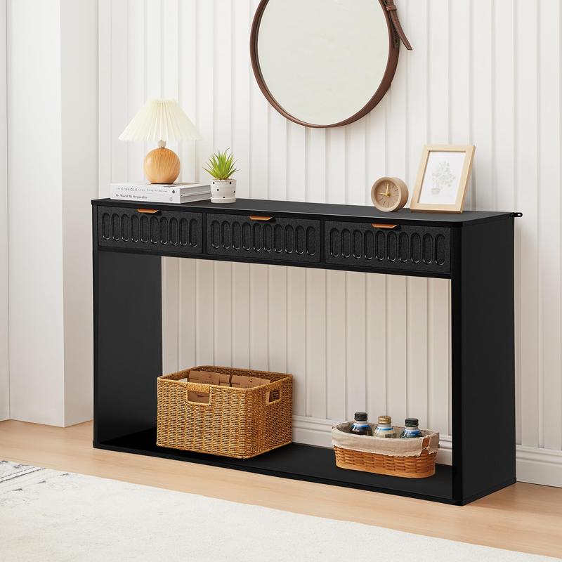 ·Fluted Console Table - The hallway table is flanked by heavy rounded support panels on both sides instead of legs, aesthetically better concealing items for privacy; and sturdily better reinforcing the load bearing. This style is a unique design with rounded corners around the table top for better protection against sharpness that can cause scratches.