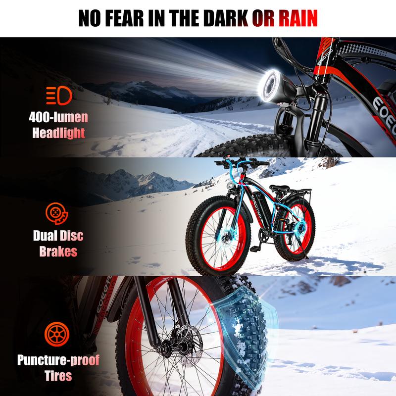 Tires and Speed- 26"x 4.0 Inch Tires: Ensures stability and speed.- Maximum Speed: Up to 30+ miles per hour, ideal for long rides.