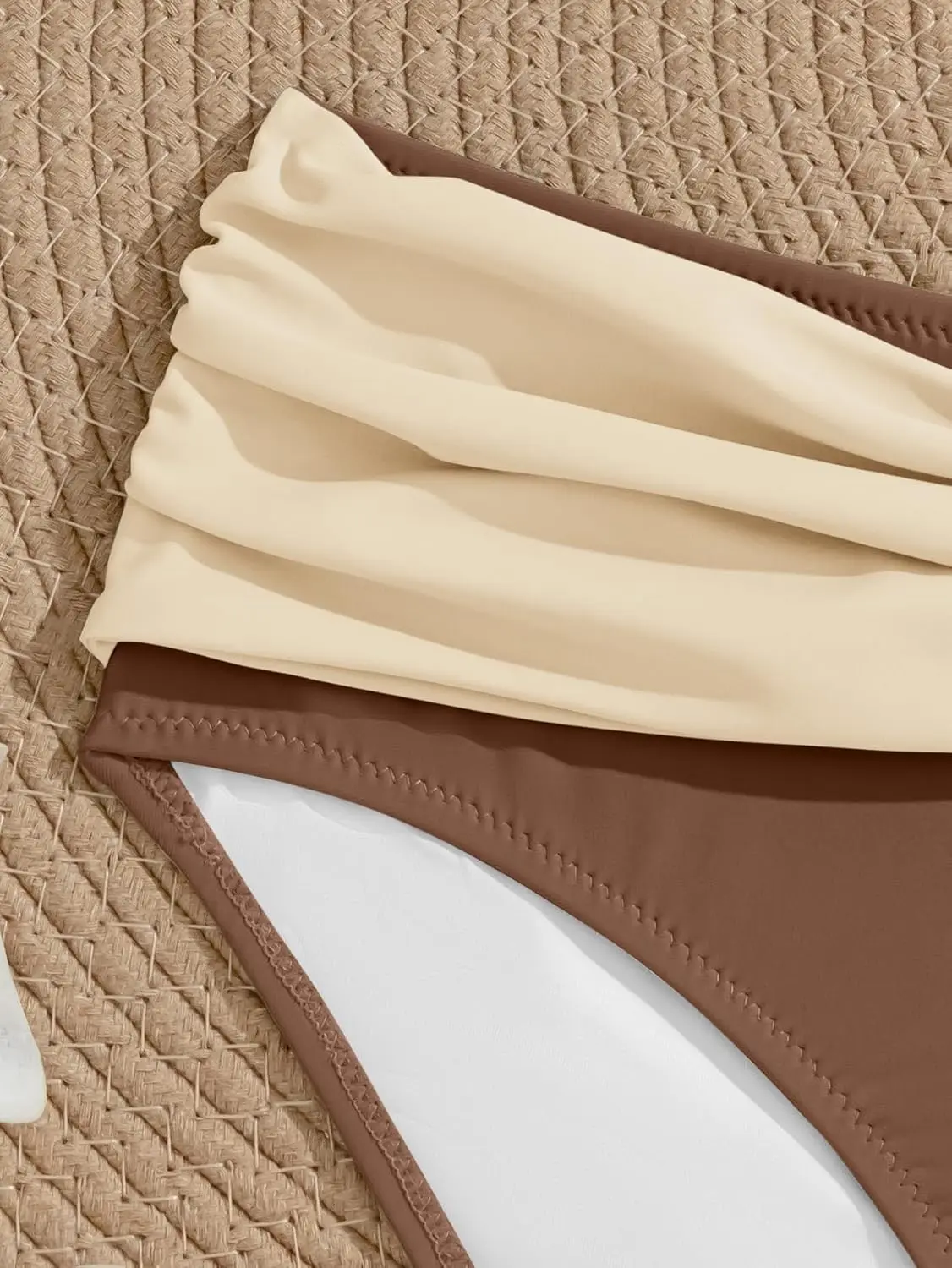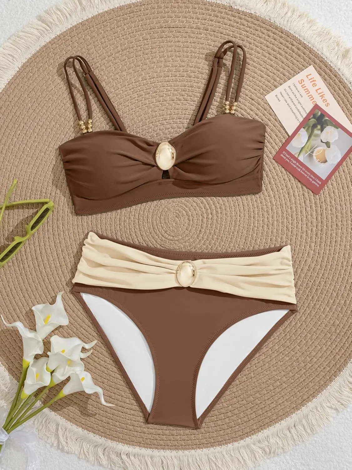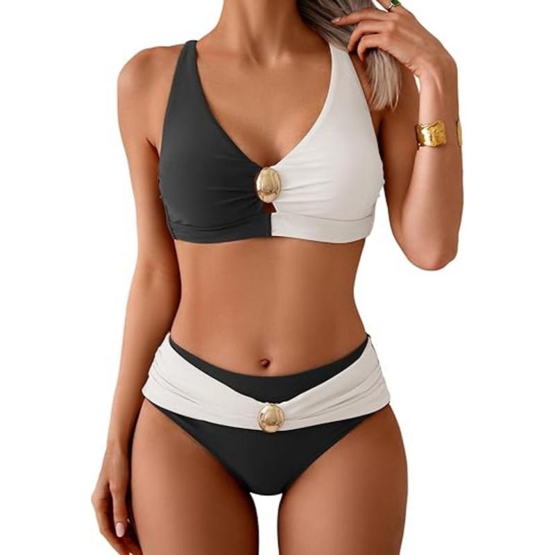 ·Stylish Design: V-neck bikini top enhances your natural curves, while features a chic metal detail are perfect for making a statement, and show off your vibrant style with our bold color block design