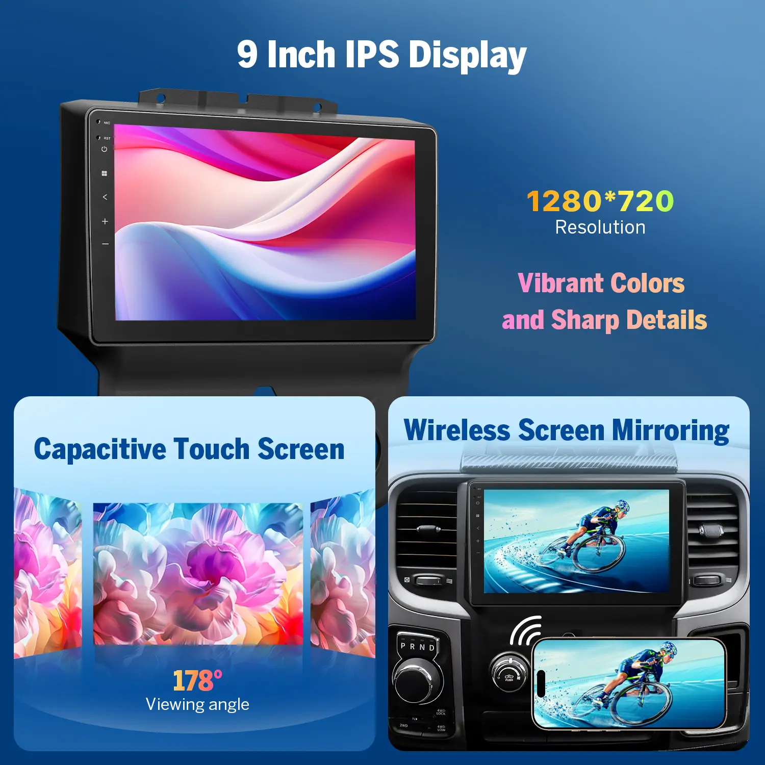 ·9-inch HD capacitive touchscreen with 1280×720 resolution