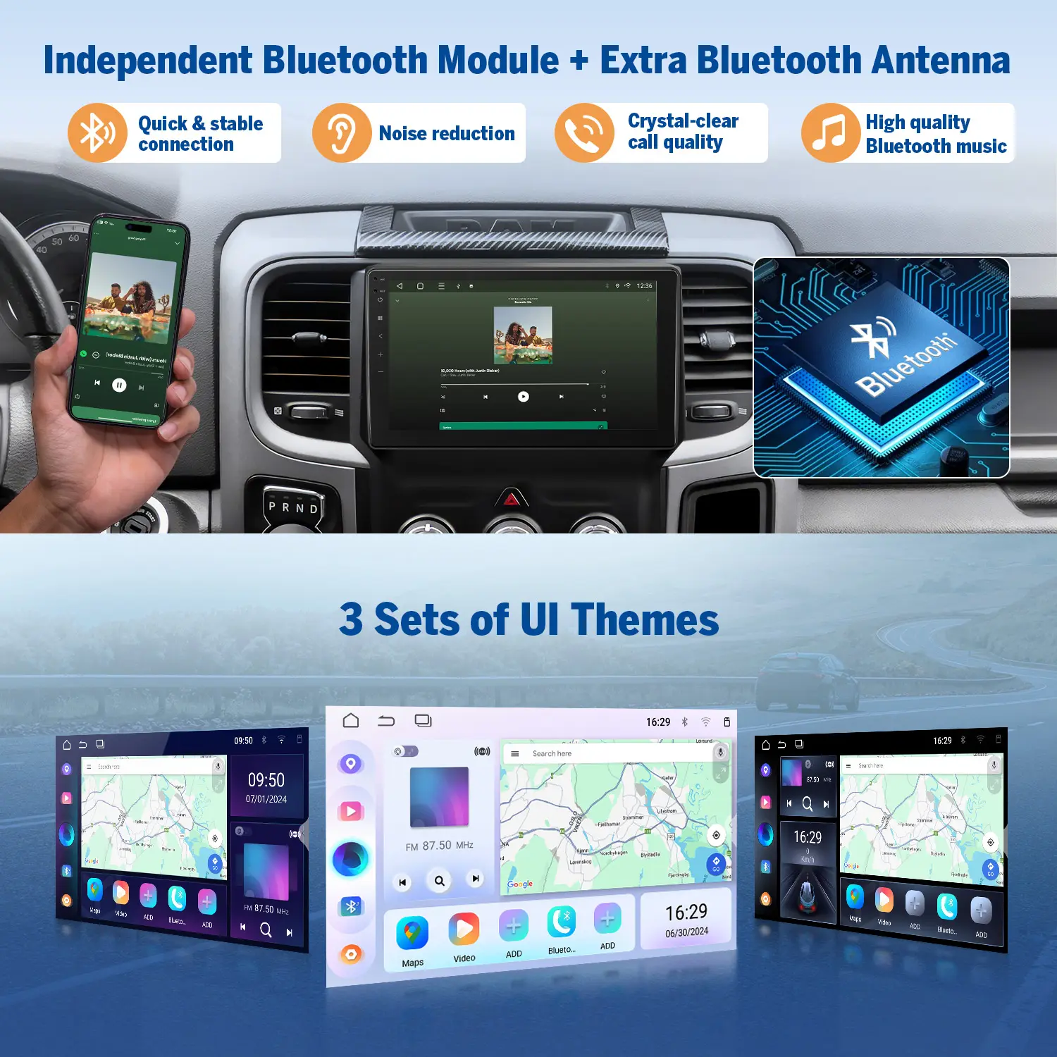 ·Compatible with Eonon accessories like the dashcam (A100), OBD2 scanner (V005), and A303 DSP Amplifier. Bluetooth 5.1 for hands-free calls.