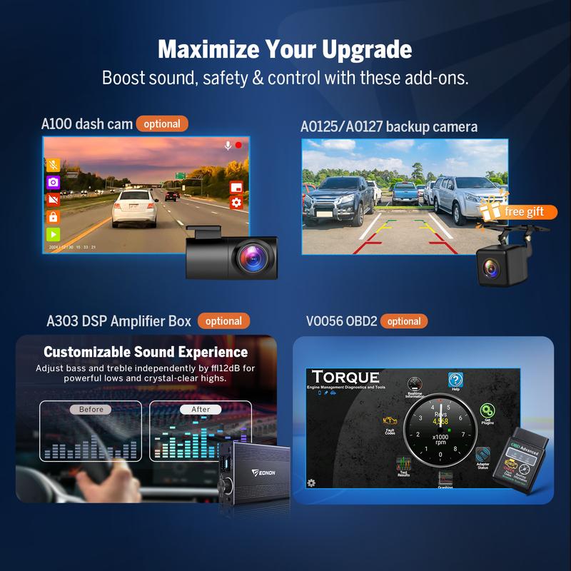 ·【Brand Quality Assurance】30-day return & 2-year warranty. Eonon is a well-trusted veteran in the automotive multimedia industry with 24 years of history. We are committed to providing consumers with high-quality, cost-effective automotive electronic products and top-notch customer service. If you have any compatibility problems or have any problems using it, please send us a message for support. Thank you for trusting Eonon!