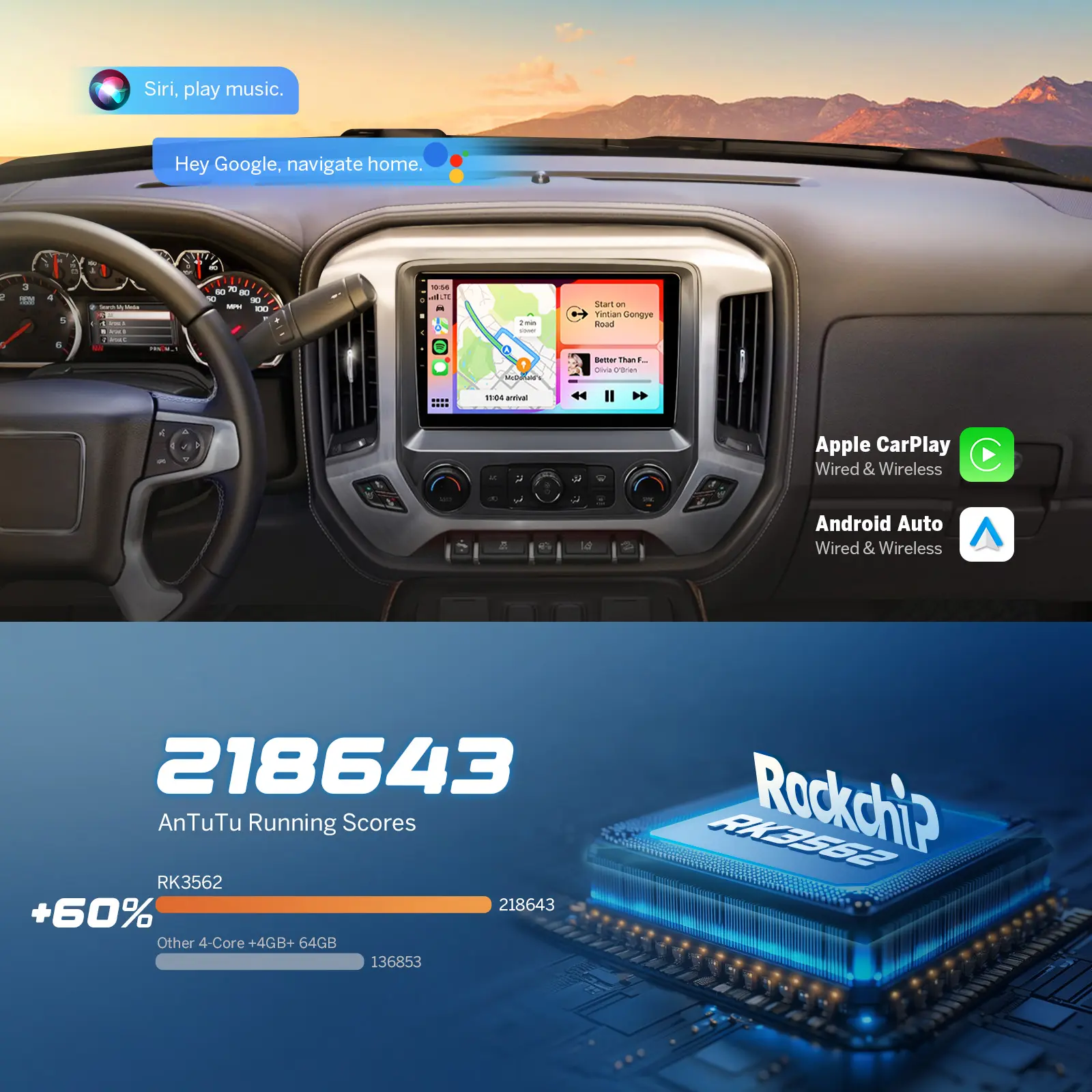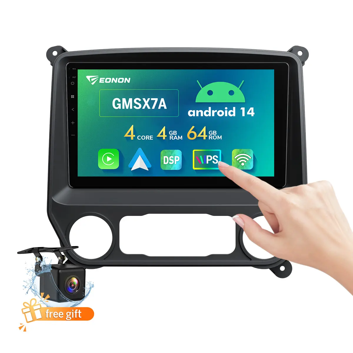 Eonon Android 13/14 Car Stereo: Designed for 2014, 2015, 2016, 2017, and 2018 Chevy Silverado/GMC Sierra. Plug & play. Keep OEM features like steering wheel controls, door reminders, parking sensors, and reversing guidelines. GMSX7A features a 4-core processor with 4GB RAM and 64GB ROM (the upgraded version of GMSX6 and GMSX7), while GMSX6S2 features an 8-core processor with 6GB RAM and 64GB ROM, enjoy smooth multitasking and faster app response times. Eonon offers convenient online firmware updates, you don't need a USB stick to upgrade.