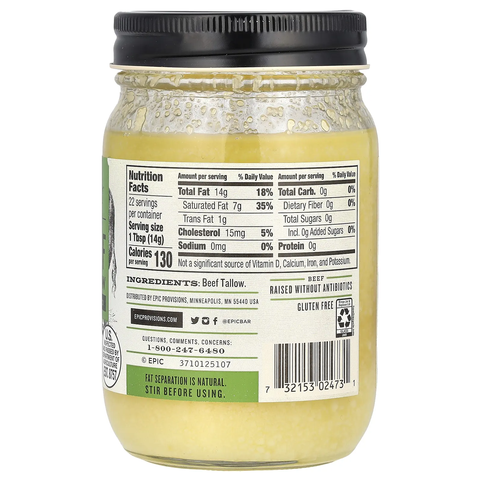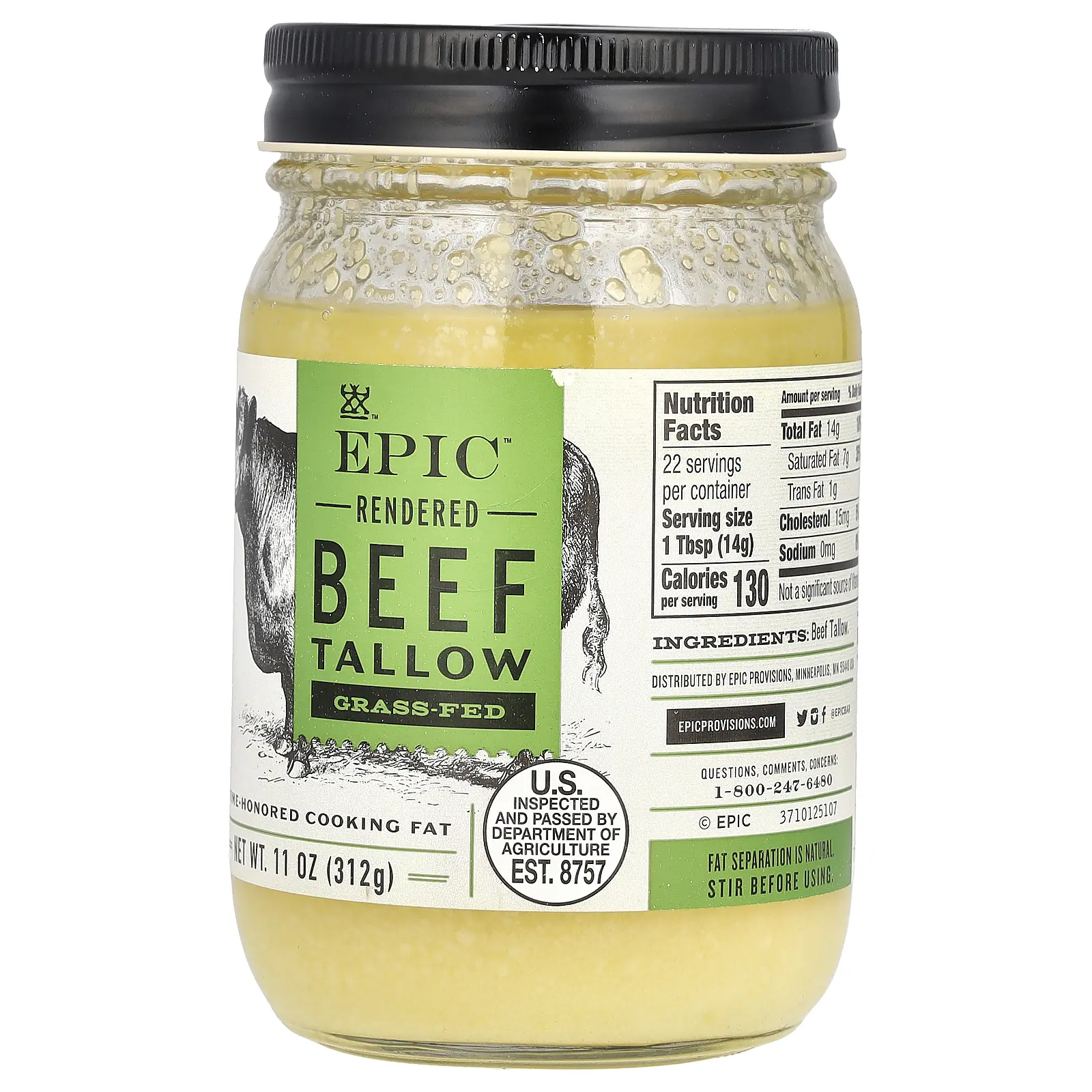 5. Epic Bar Rendered Grass Fed Beef Tallow, 11 oz (312 g)