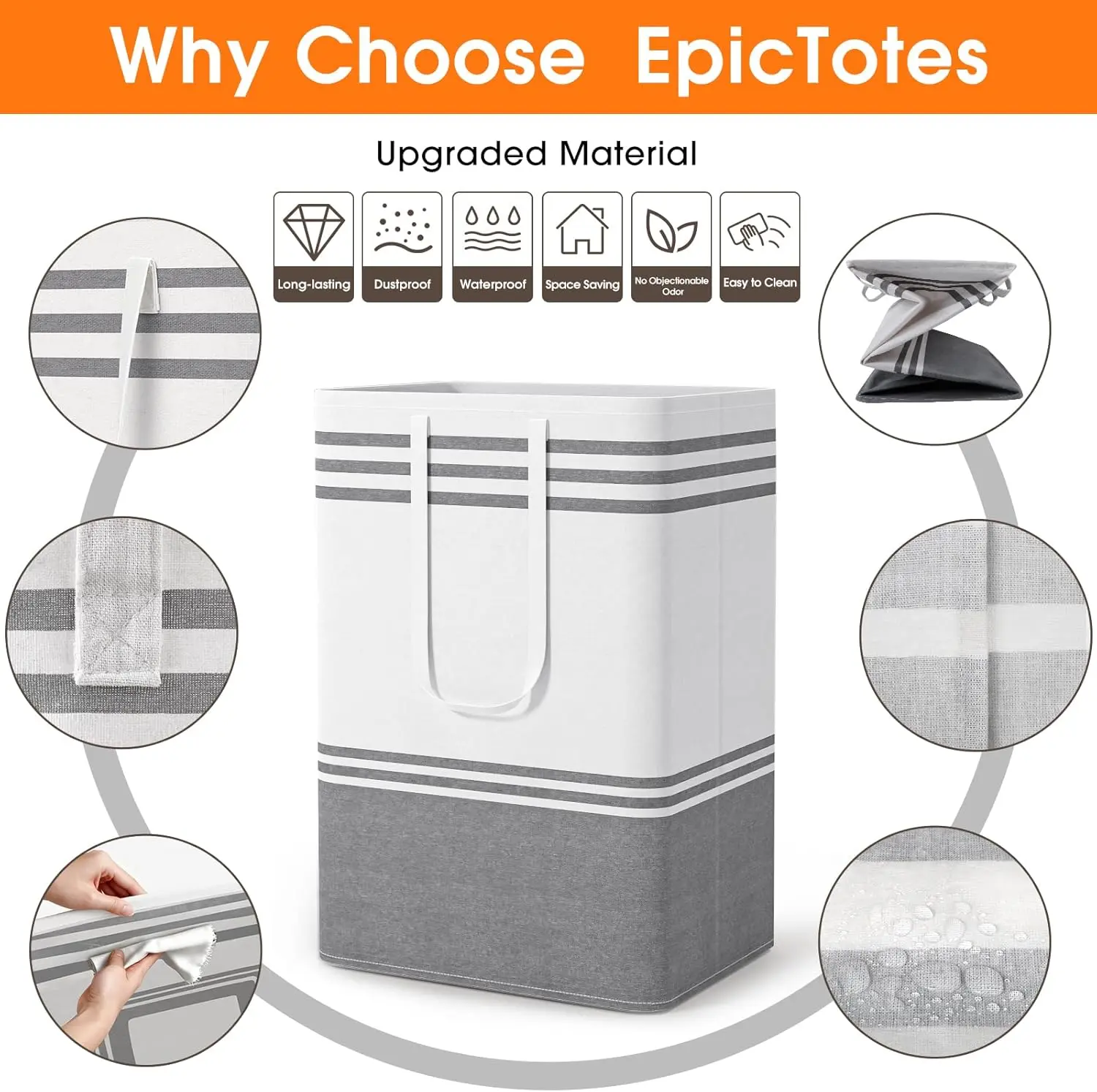 The foldable design allows the EpicTotes laundry basket to collapse flat for easy storage in a closet, drawer, or small space when not in use. When opened, it provides generous room without taking up unnecessary space in your home. Perfect for bedrooms, bathrooms, laundry rooms, living rooms, and college dorms.