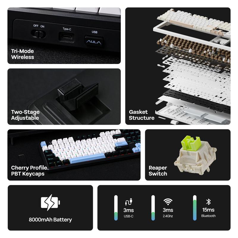 ·Tri-Mode Connectivity & 8000mAh Long-Lasting Battery