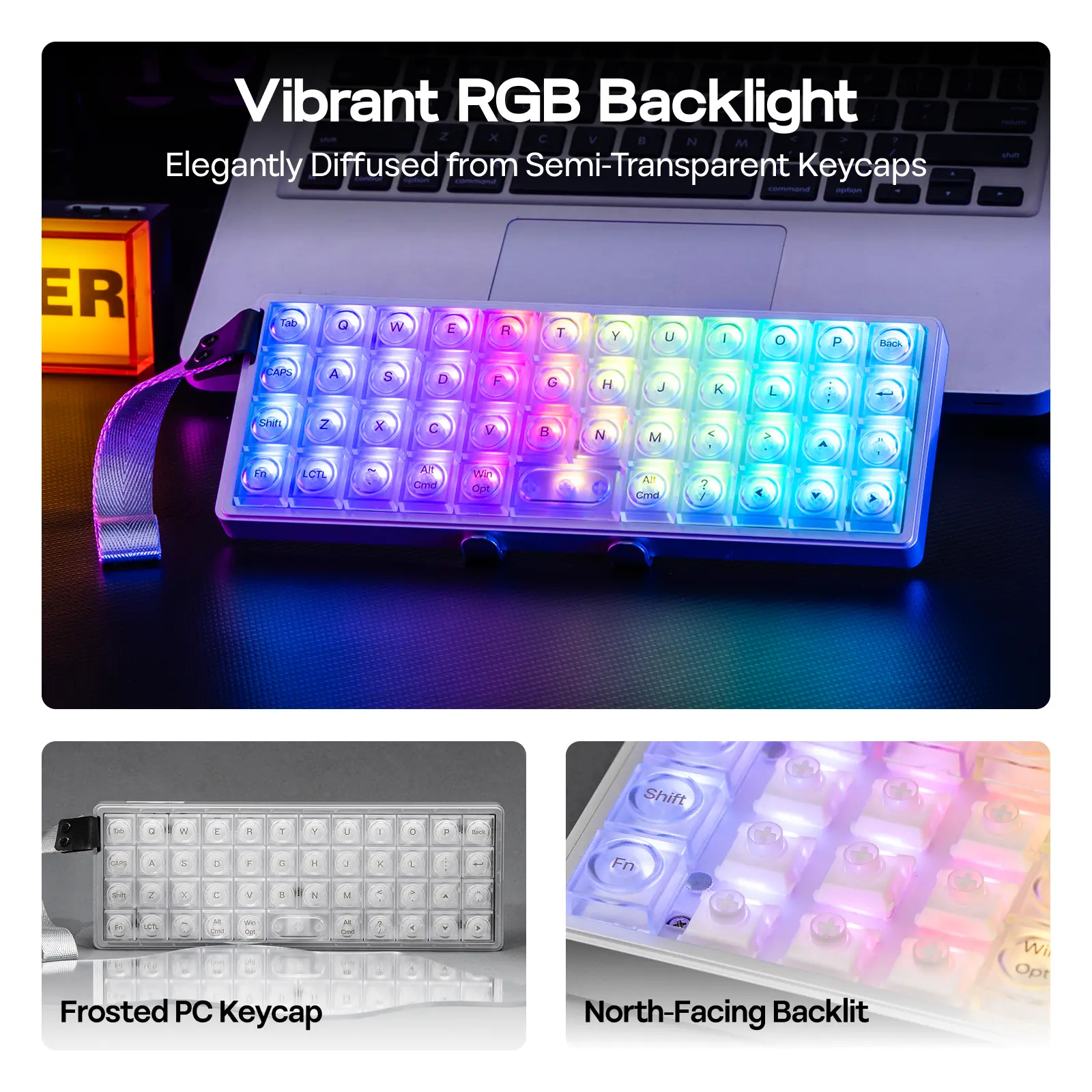 Per-Key Customizable RGB: Bring the Luma40 to life with its vibrant RGB backlighting. Fully adjustable on a per-key basis, the Luma40 backlit keyboard allows you to create custom lighting profiles that match your mood, your game, or your setup. Craft a truly unique visual experience that reflects your personality, with complete control over color, saturation, tone, brightness, and speed. Set a different color for each layer of designing workspace, or highlight essential gaming keys in a bold red, the customizable lighting is more than just a visual treat; it's a practical tool for improving your workflow