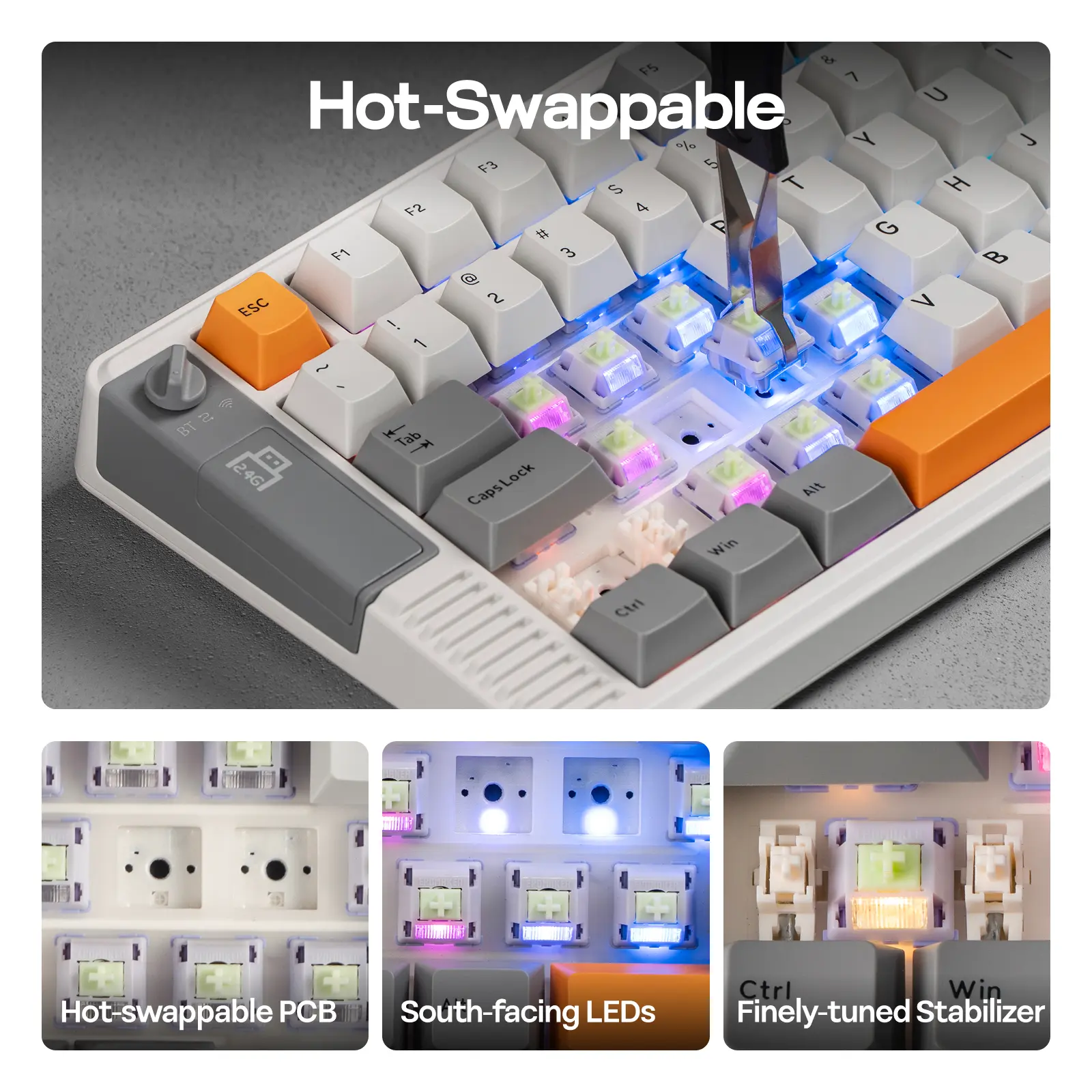 Tri-Mode Wireless for Mac/PC/Android: Experience unparalleled versatility with the RT85 wireless mechanical keyboard, offering tri-mode connectivity between a lightning-fast 2.4GHz wireless dongle for lag-free gaming on your PC, Bluetooth for convenient connection to your Mac or Android tablet, or a wired USB connection for rock-solid stability during competitive play or charging. Dominating in leisure games, chatting with friends on android pads or drafting documents on mac laptop, enjoy the effortlessly interconnected digital life companied by consistently comfortable and responsive tactile typing RT85 keyboard offers.