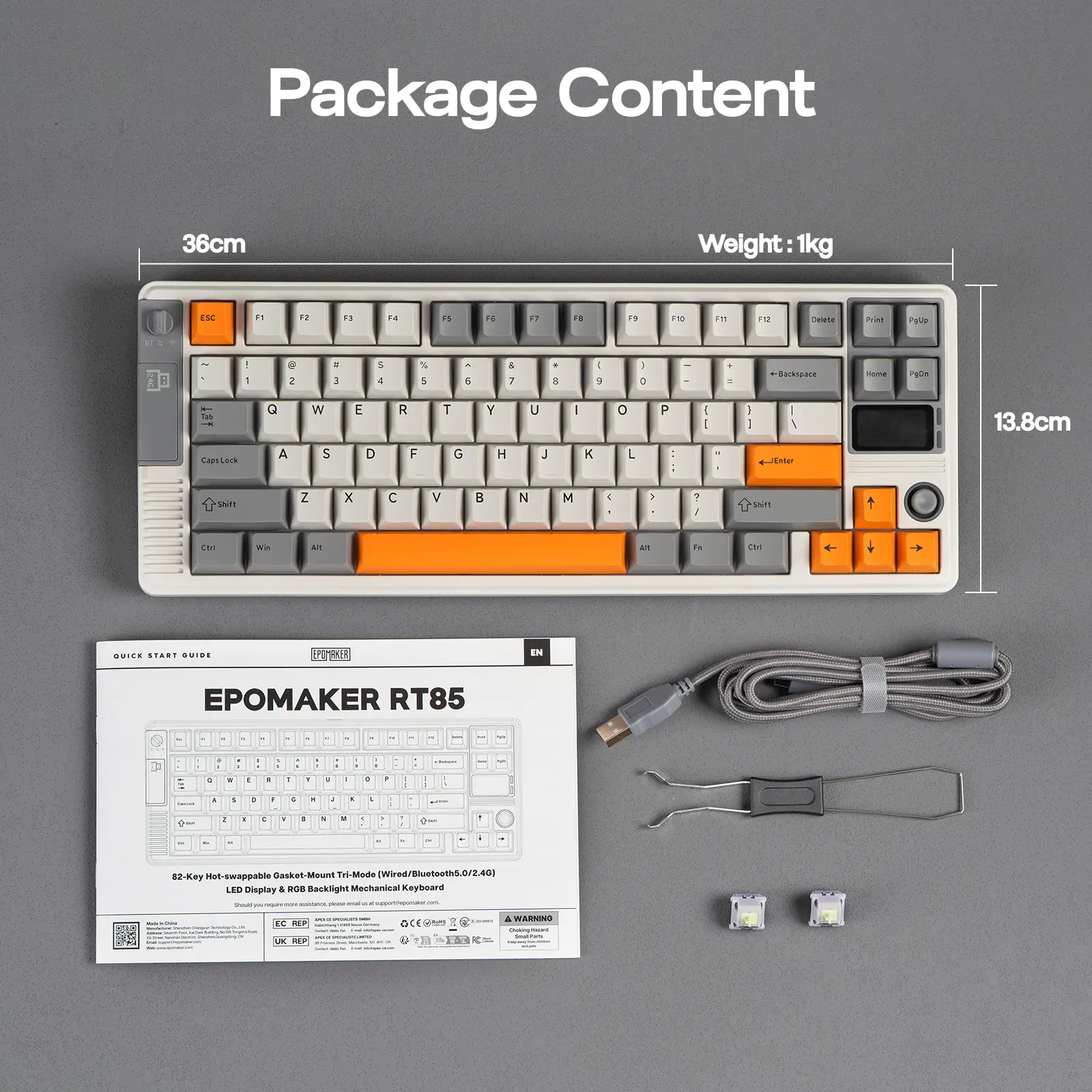 Unfading Retro Style: Looks classic and built to last, the RT85 gaming keyboard comes in two distinct colorways – the calming green with dark grey or retro white with grey and vibrant orange. Reminiscent of classic gaming consoles with rounded frame, screen and joystick, the addition of full RGB backlight, which shines bright thanks to south-facing per-key LEDs, adds a touch of modern functionality to the retro-inspired setup. Not just a looker, the 1kg solid weight speaks volumes about its robust, premium construction, ensuring it stays firmly in place even during intense gaming sessions, while the double-shot PBT keycaps guarantee no greasy shine over time with clearly visible characters.