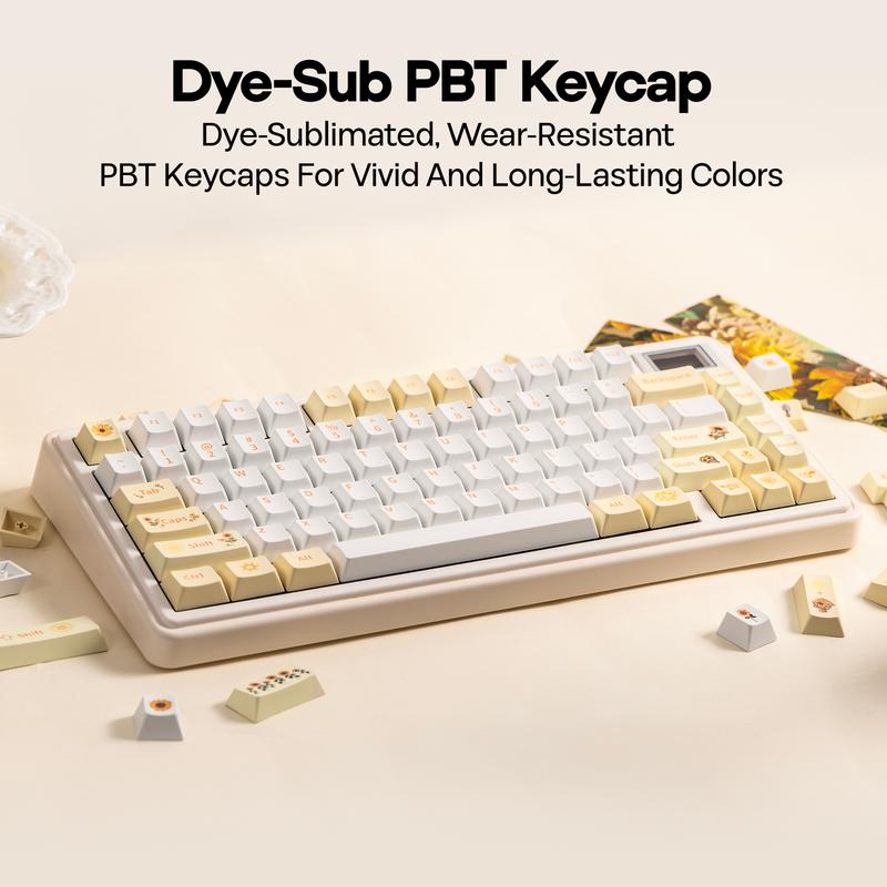 Long-Lasting Dye Sublimation Keycaps: Dye-sublimation is a highly effective printing process that produces professional-grade graphics. This method ensures images resist cracking and wear even after repeated use, guaranteeing visuals remain vibrant for years to come. Leveraging this technique, the EPOMAKER Sunflower keycaps deliver exceptionally vivid colors and striking designs